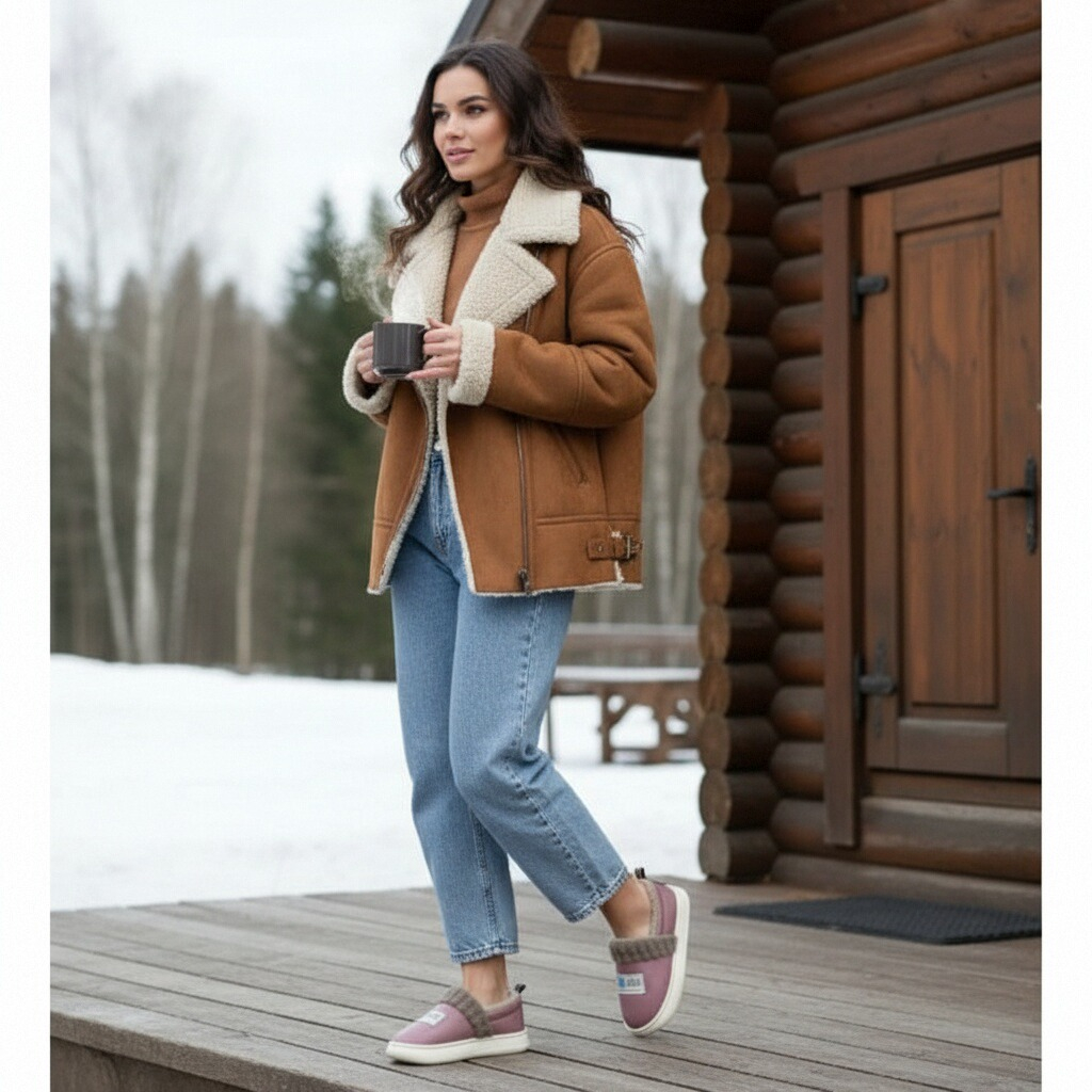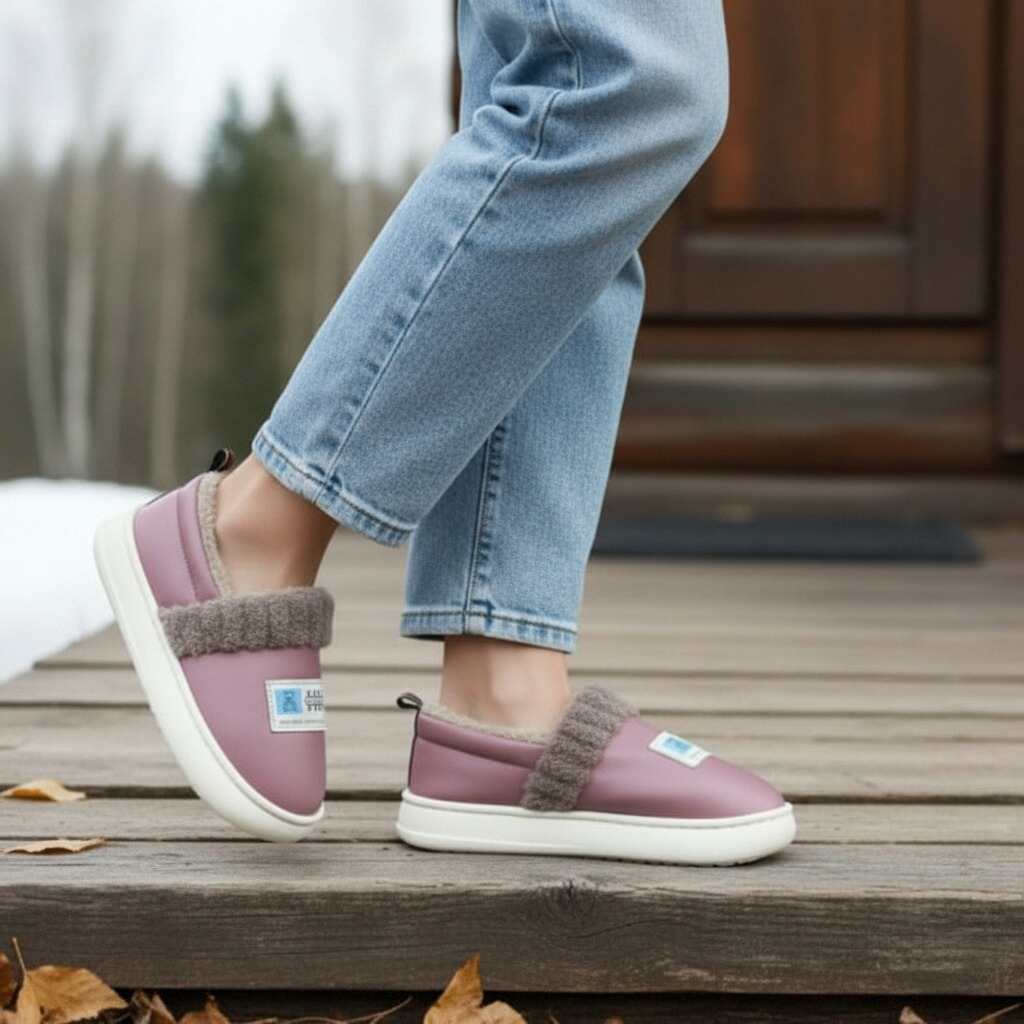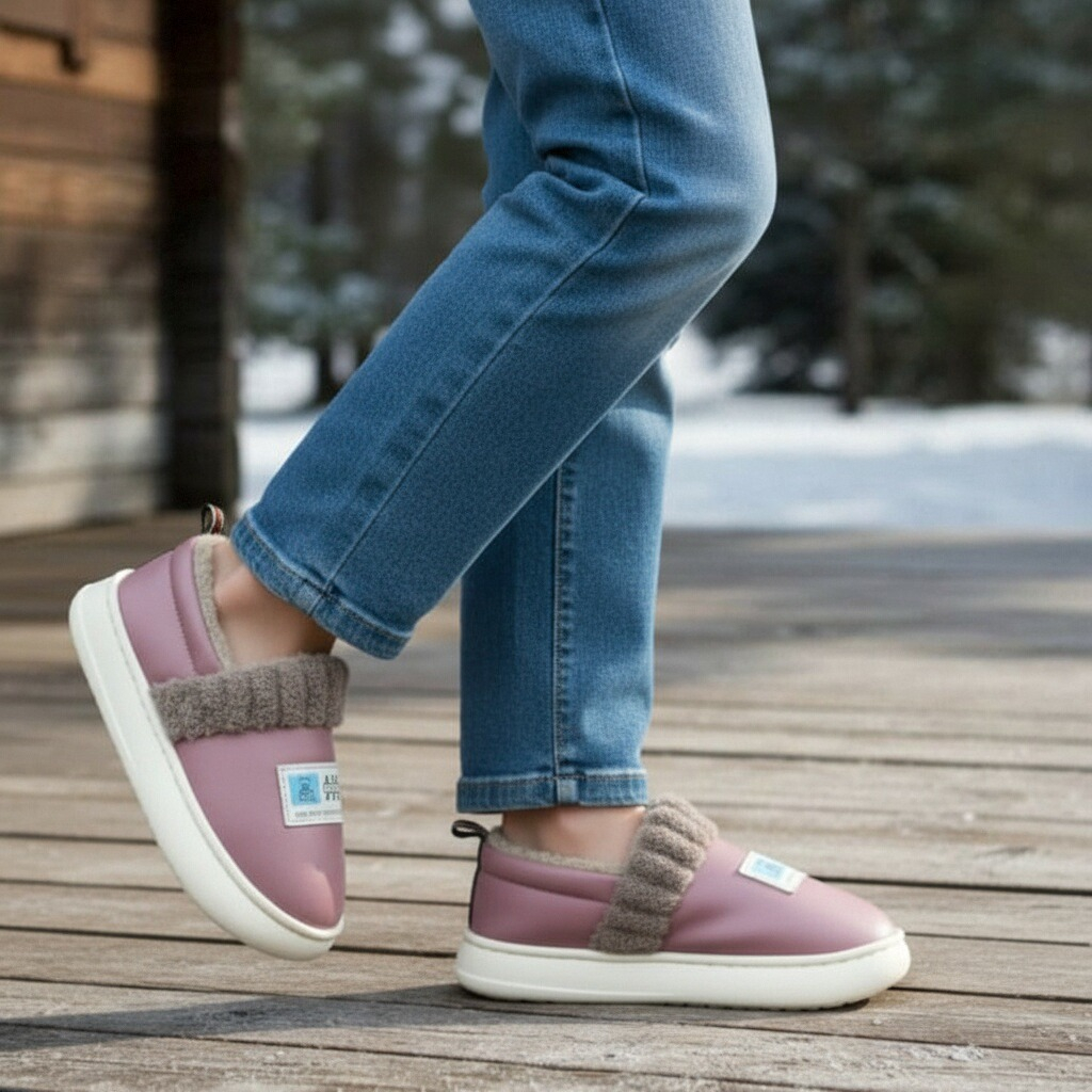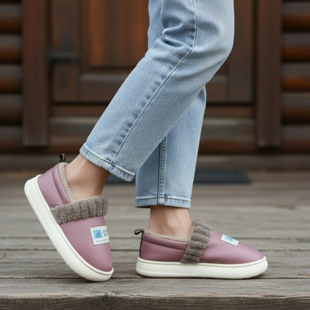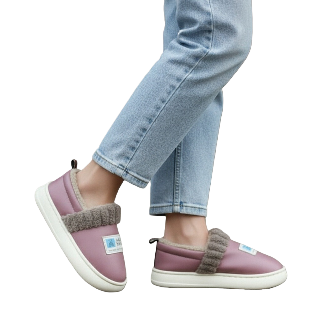 Papuci de casă pufoși și relaxanți, lucrați din materiale moi și călduroase. Sunt alegerea perfectă pentru confort și încălzire.