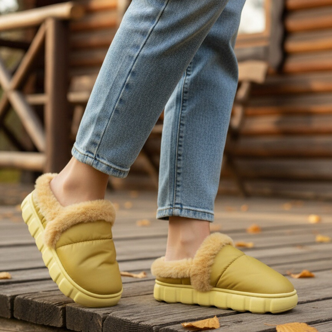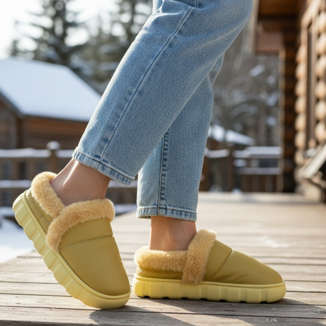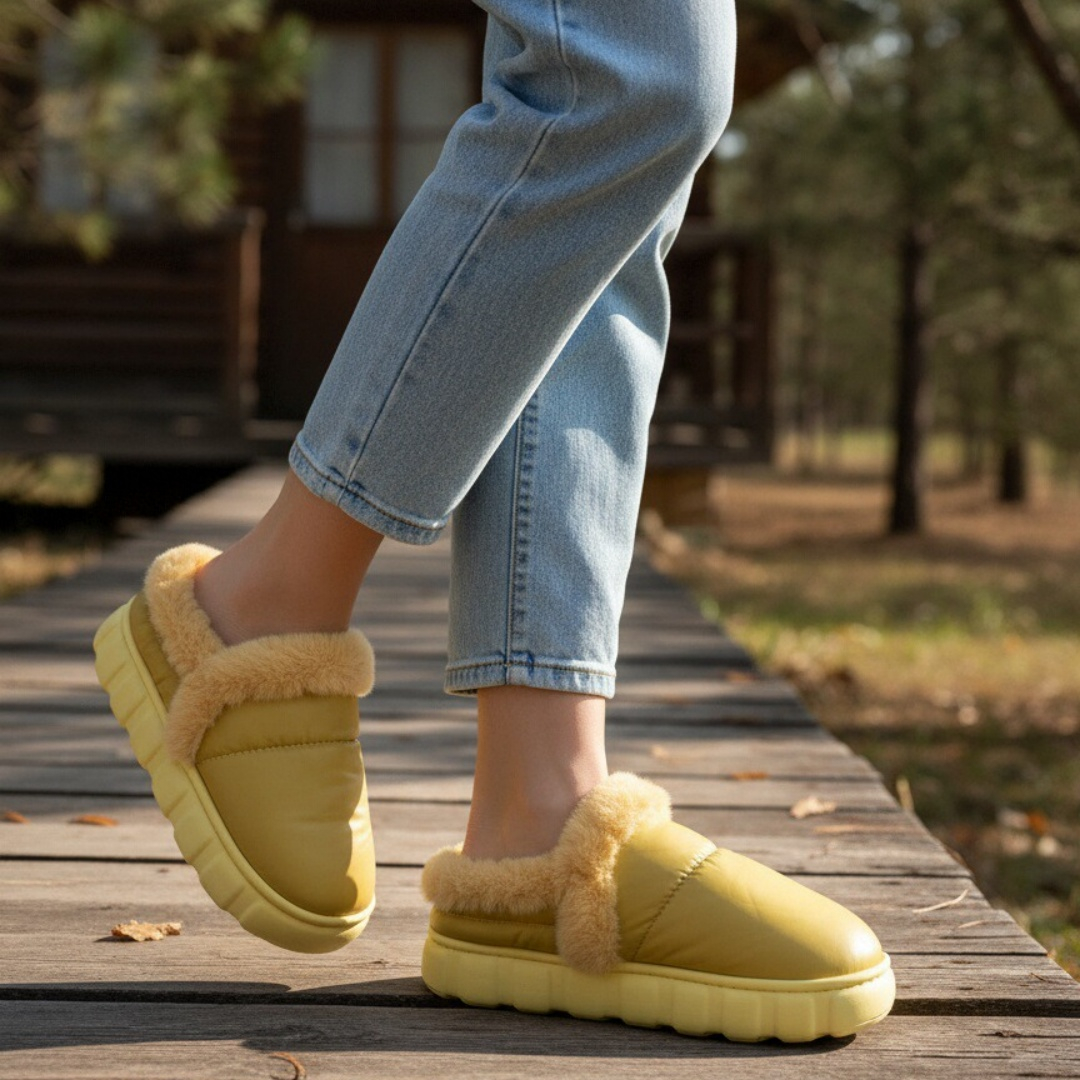 Papuci de casă pufoși și relaxanți, lucrați din materiale moi și călduroase. Sunt alegerea perfectă pentru confort și încălzire.