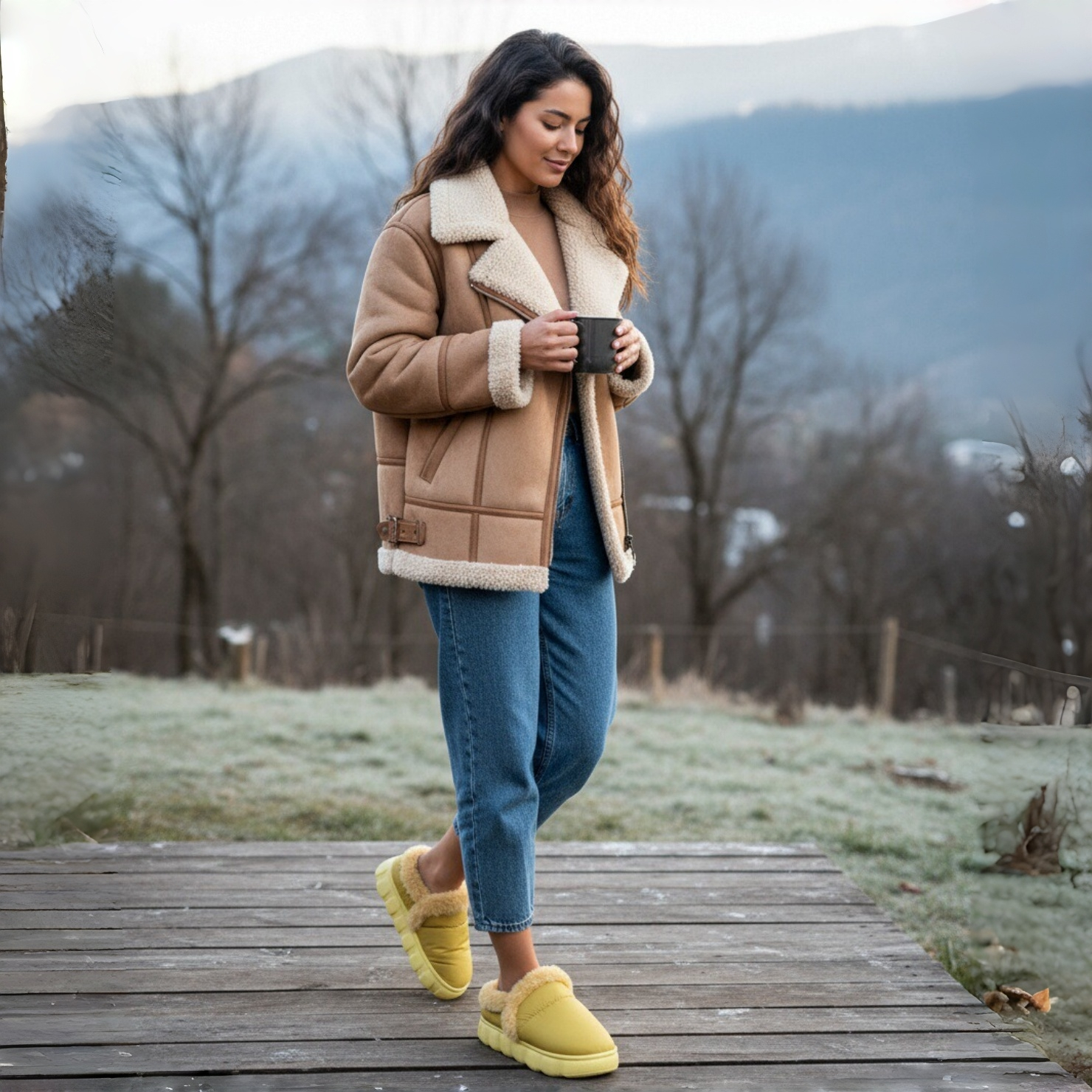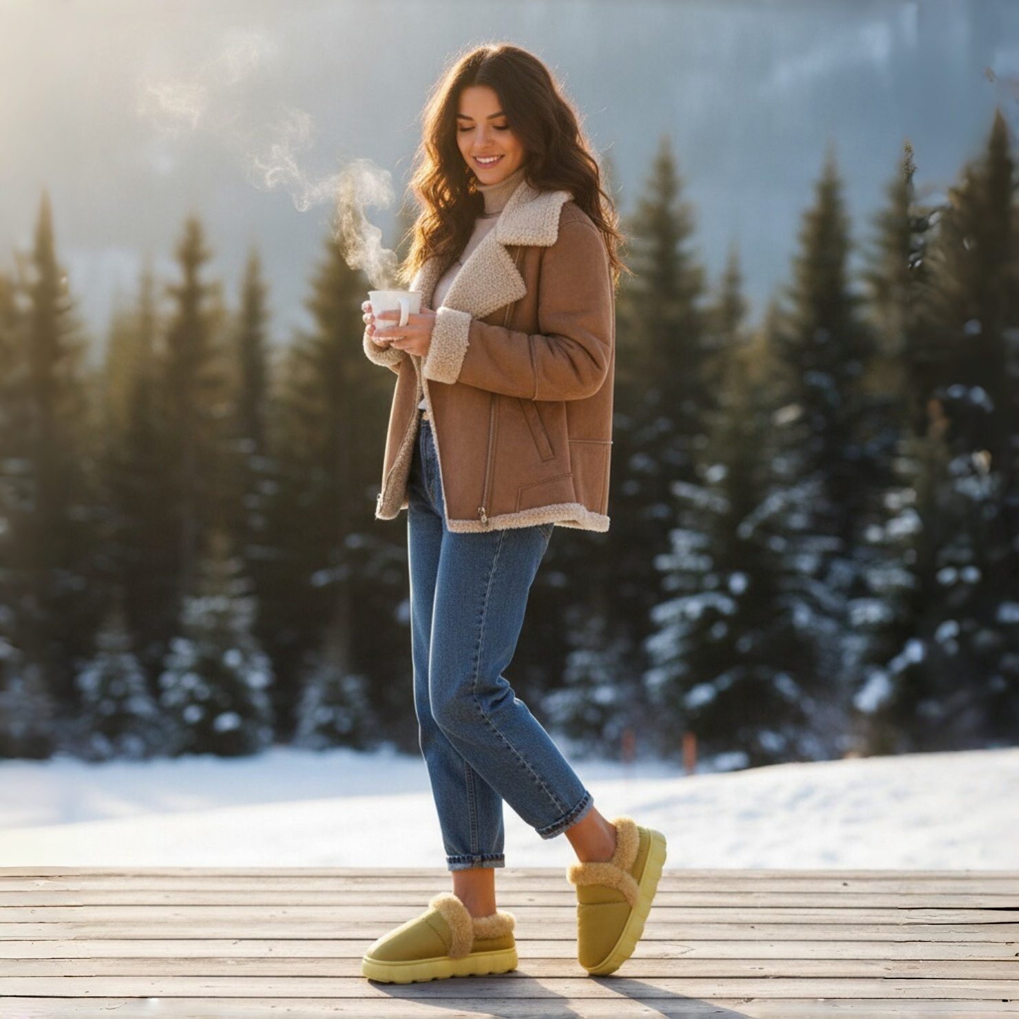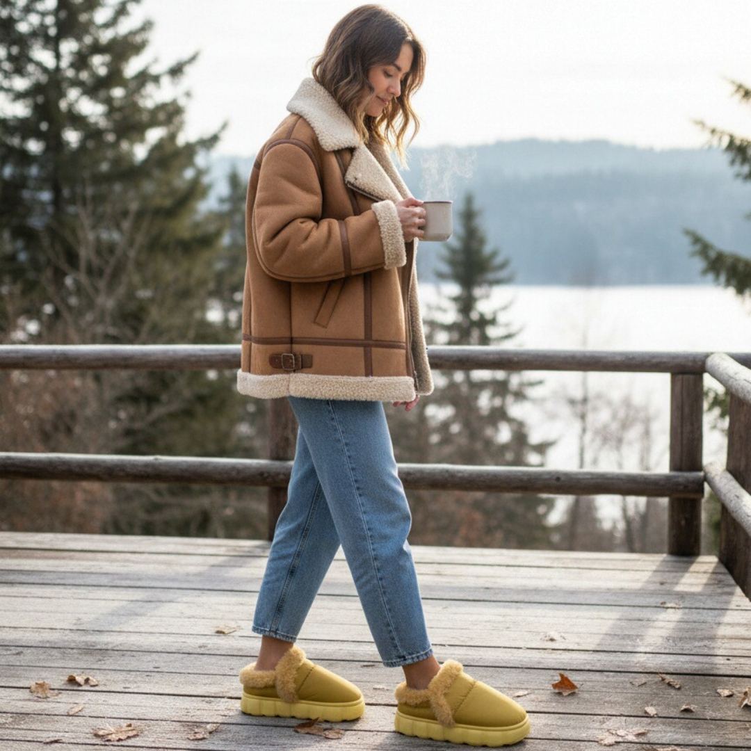 Papuci de casă pufoși și relaxanți, lucrați din materiale moi și călduroase. Sunt alegerea perfectă pentru confort și încălzire.