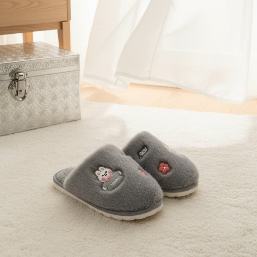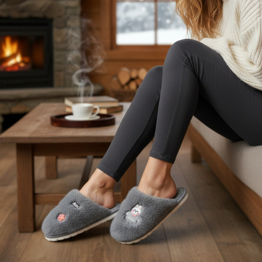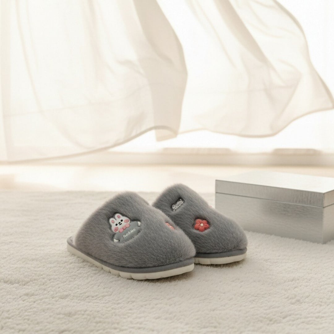 Papuci de casă pufoși și relaxanți, lucrați din materiale moi și călduroase. Sunt alegerea perfectă pentru confort și încălzire.