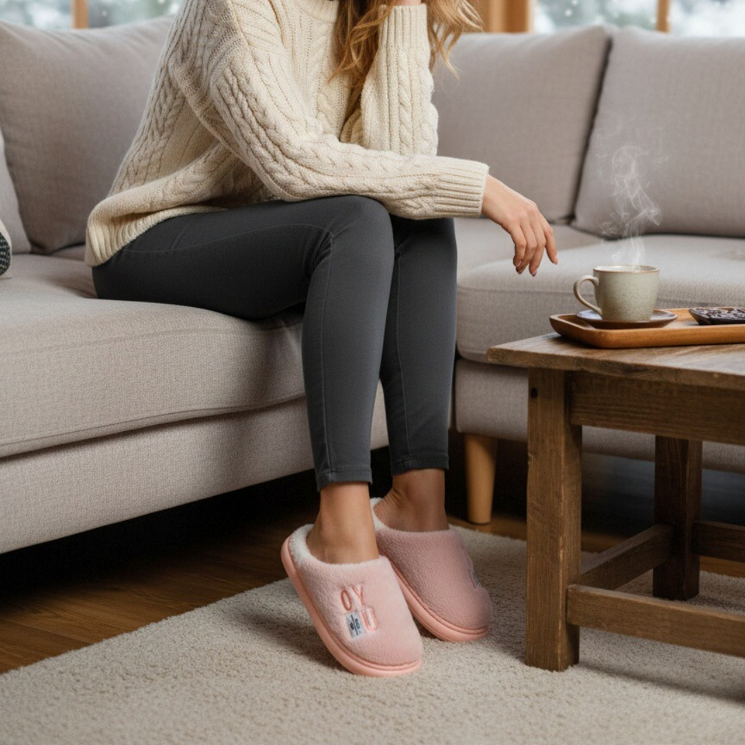 Papuci de casă pufoși și relaxanți, lucrați din materiale moi și călduroase. Sunt alegerea perfectă pentru confort și încălzire.