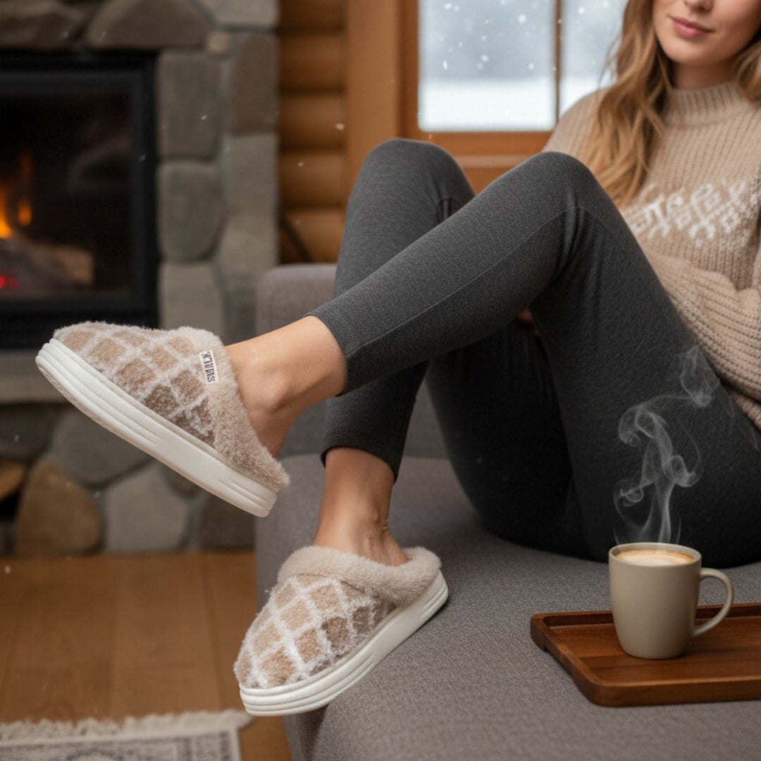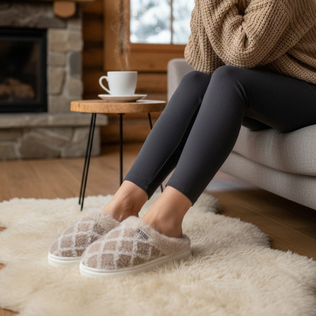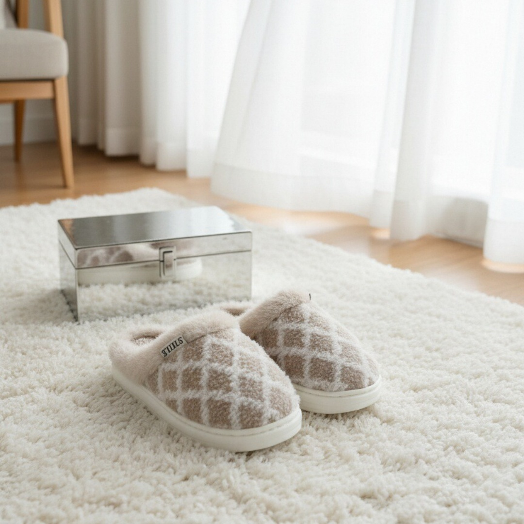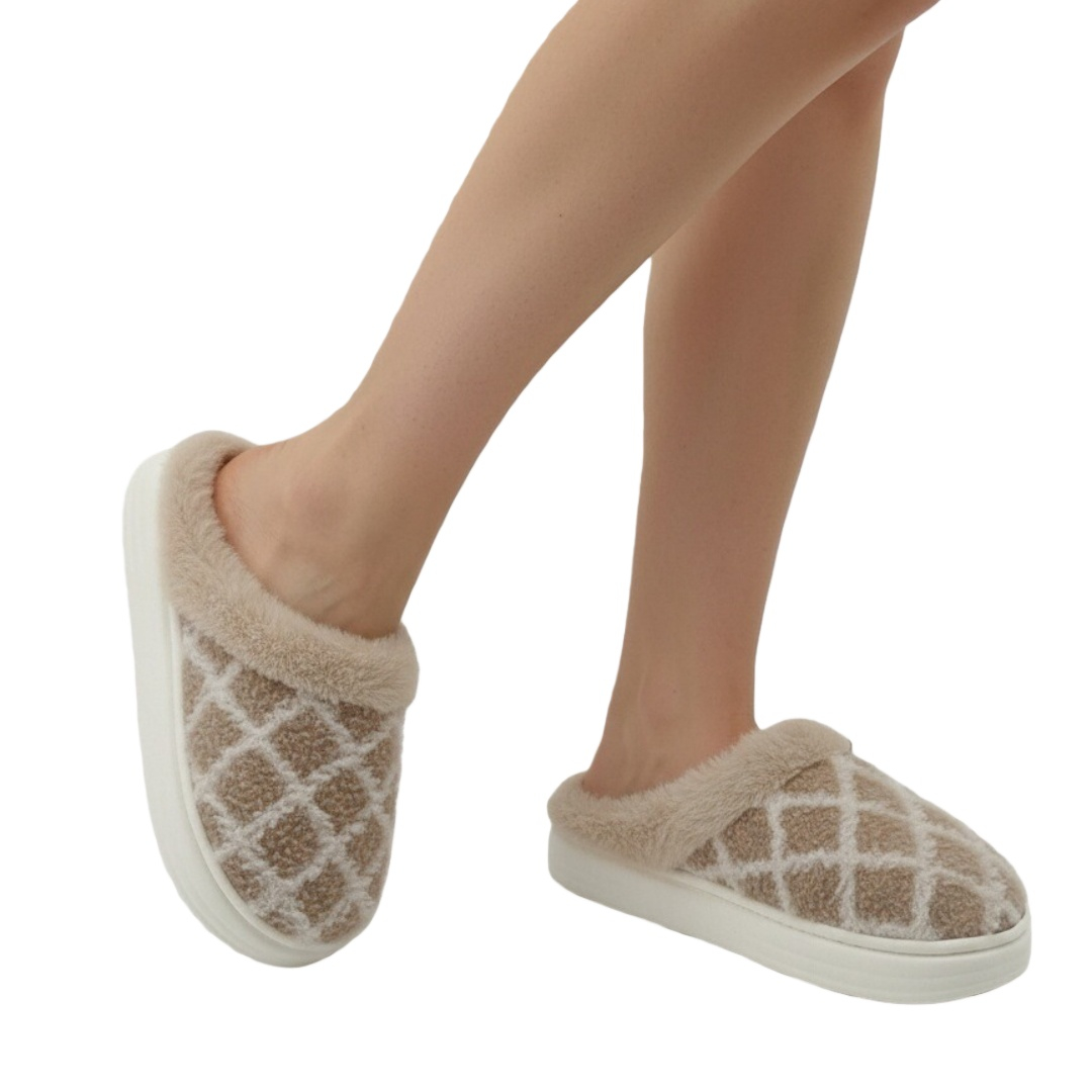 Papuci de casă pufoși și relaxanți, lucrați din materiale moi și călduroase. Sunt alegerea perfectă pentru confort și încălzire.