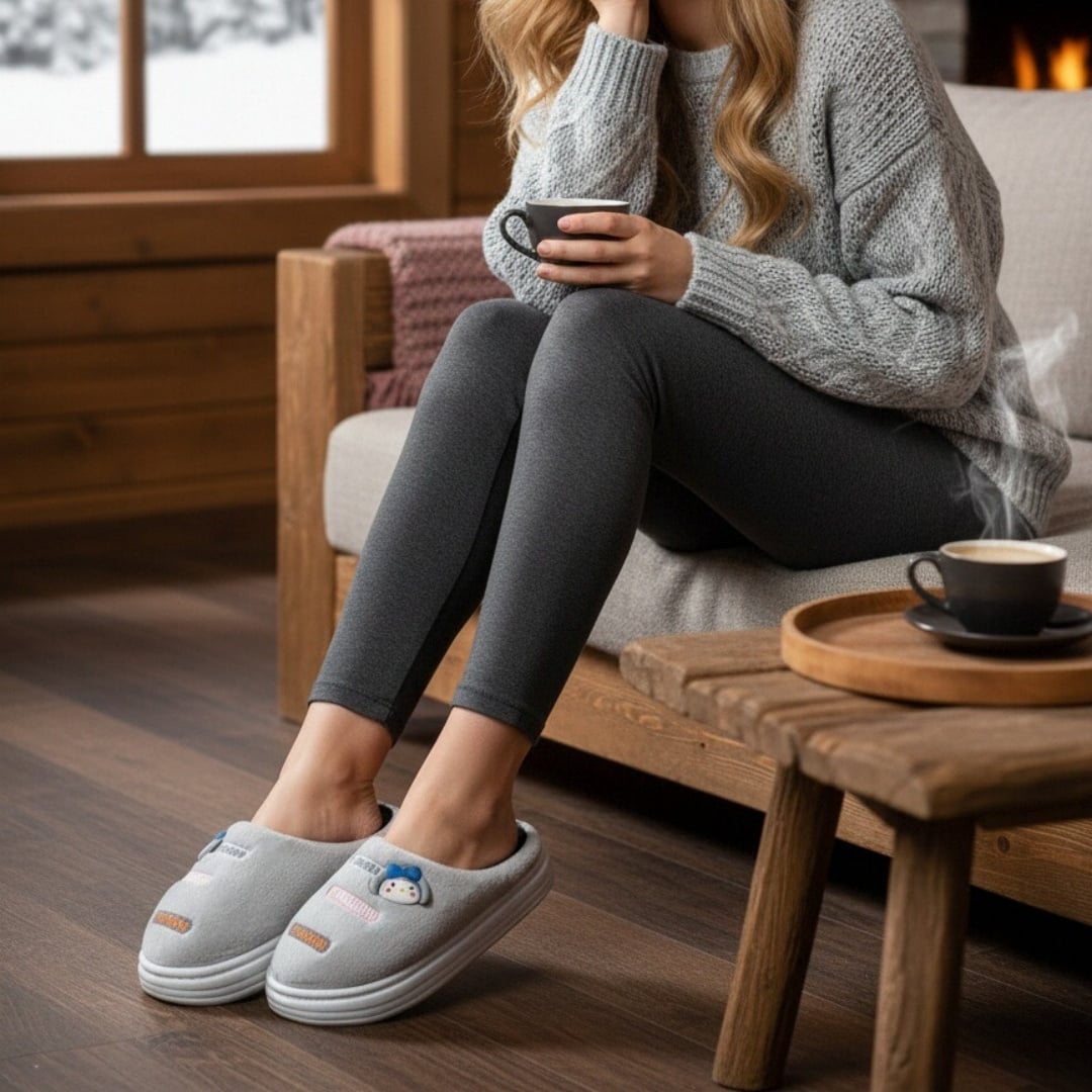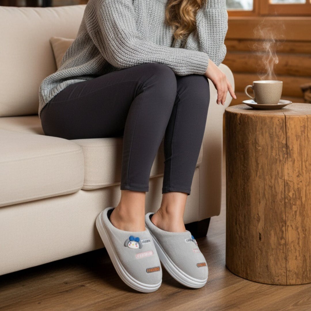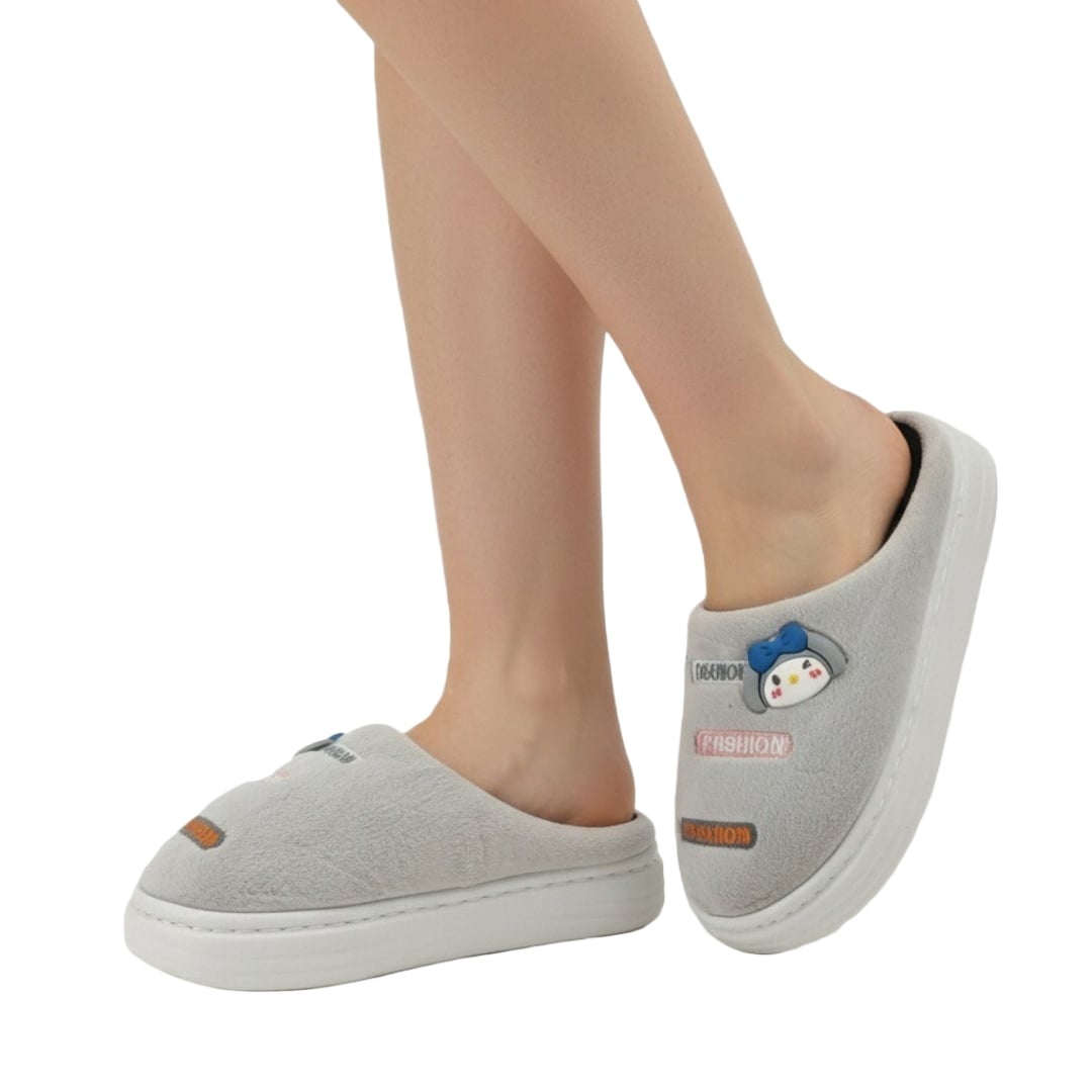 Papuci de casă pufoși și relaxanți, lucrați din materiale moi și călduroase. Sunt alegerea perfectă pentru confort și încălzire.