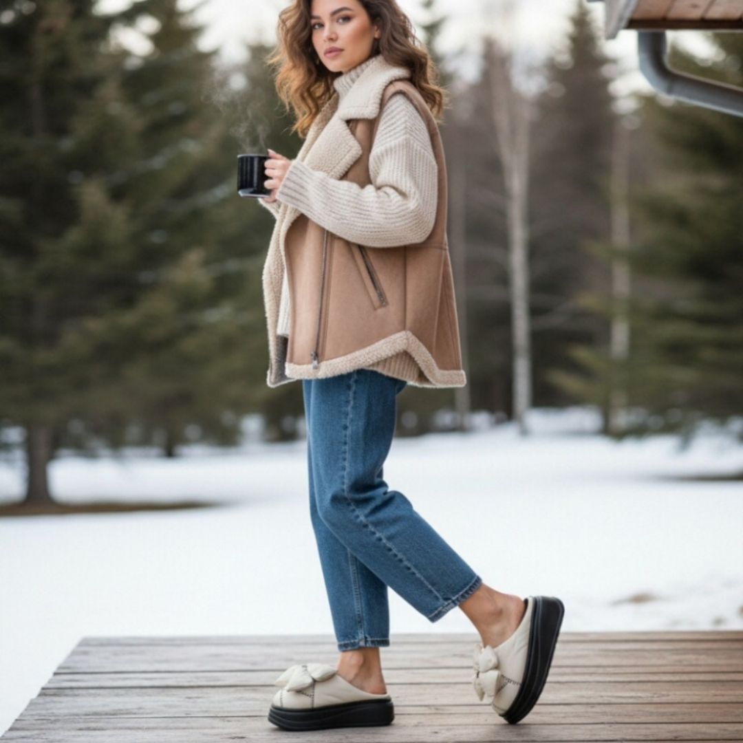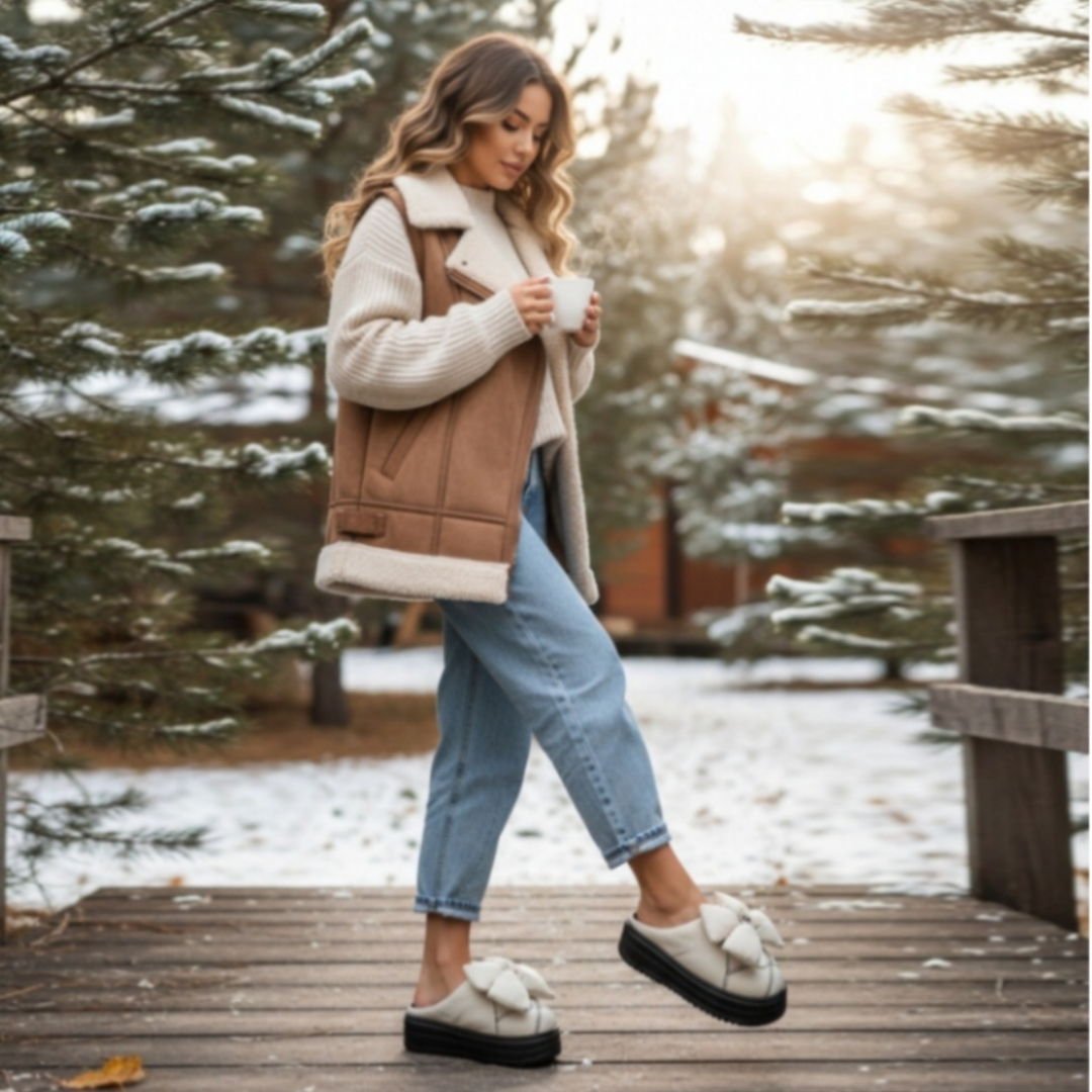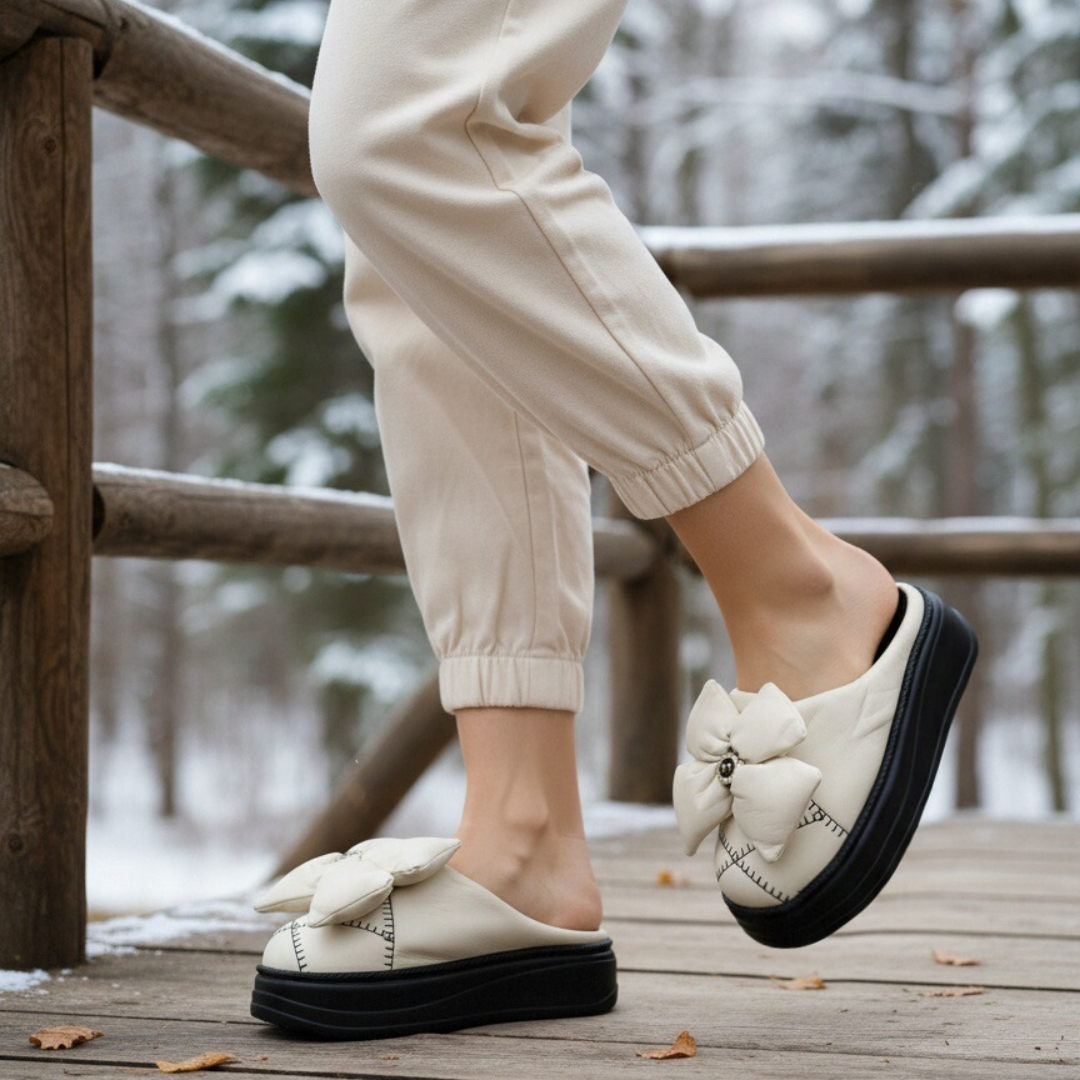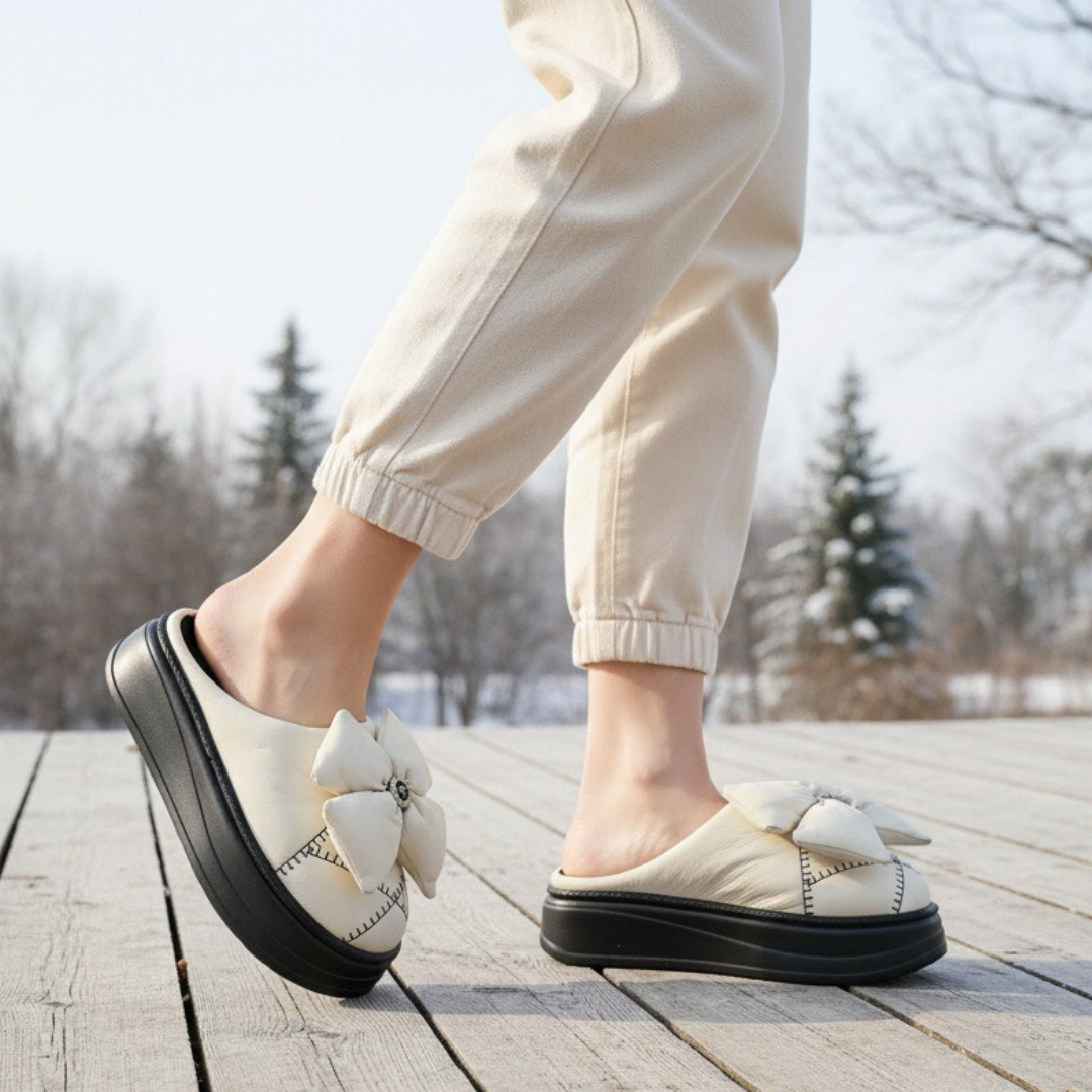 Papuci de casă pufoși și relaxanți, lucrați din materiale moi și călduroase. Sunt alegerea perfectă pentru confort și încălzire.