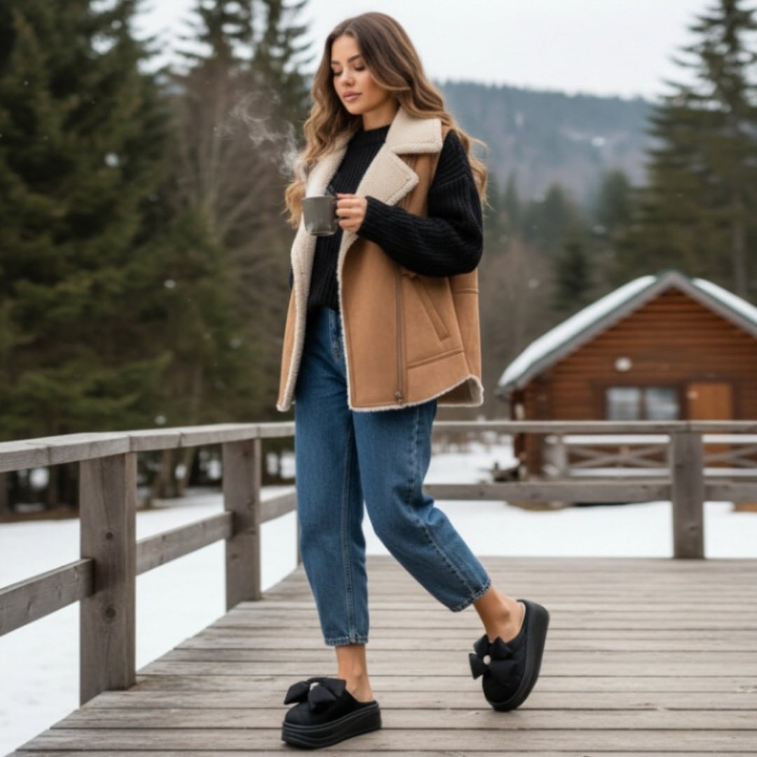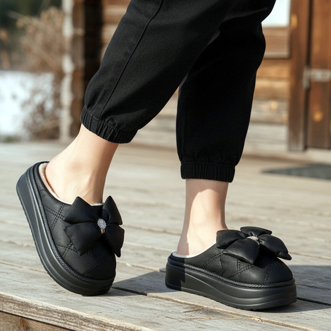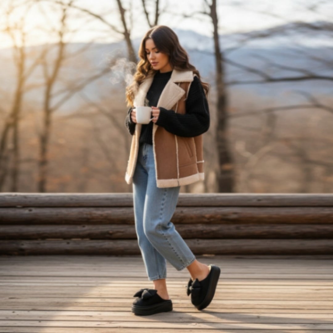 Papuci de casă pufoși și relaxanți, lucrați din materiale moi și călduroase. Sunt alegerea perfectă pentru confort și încălzire.