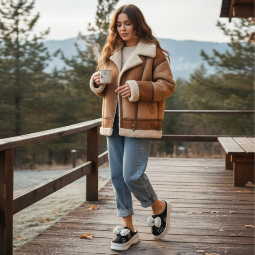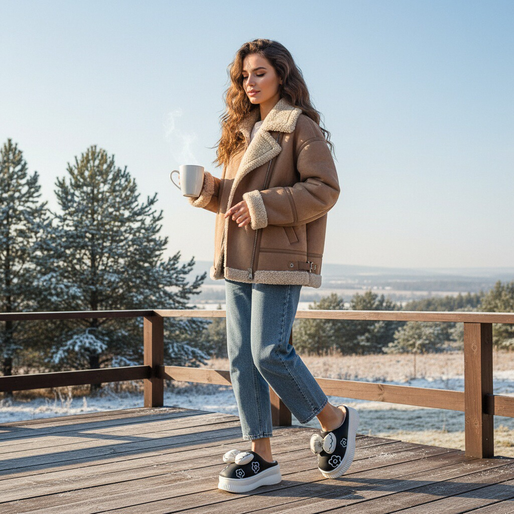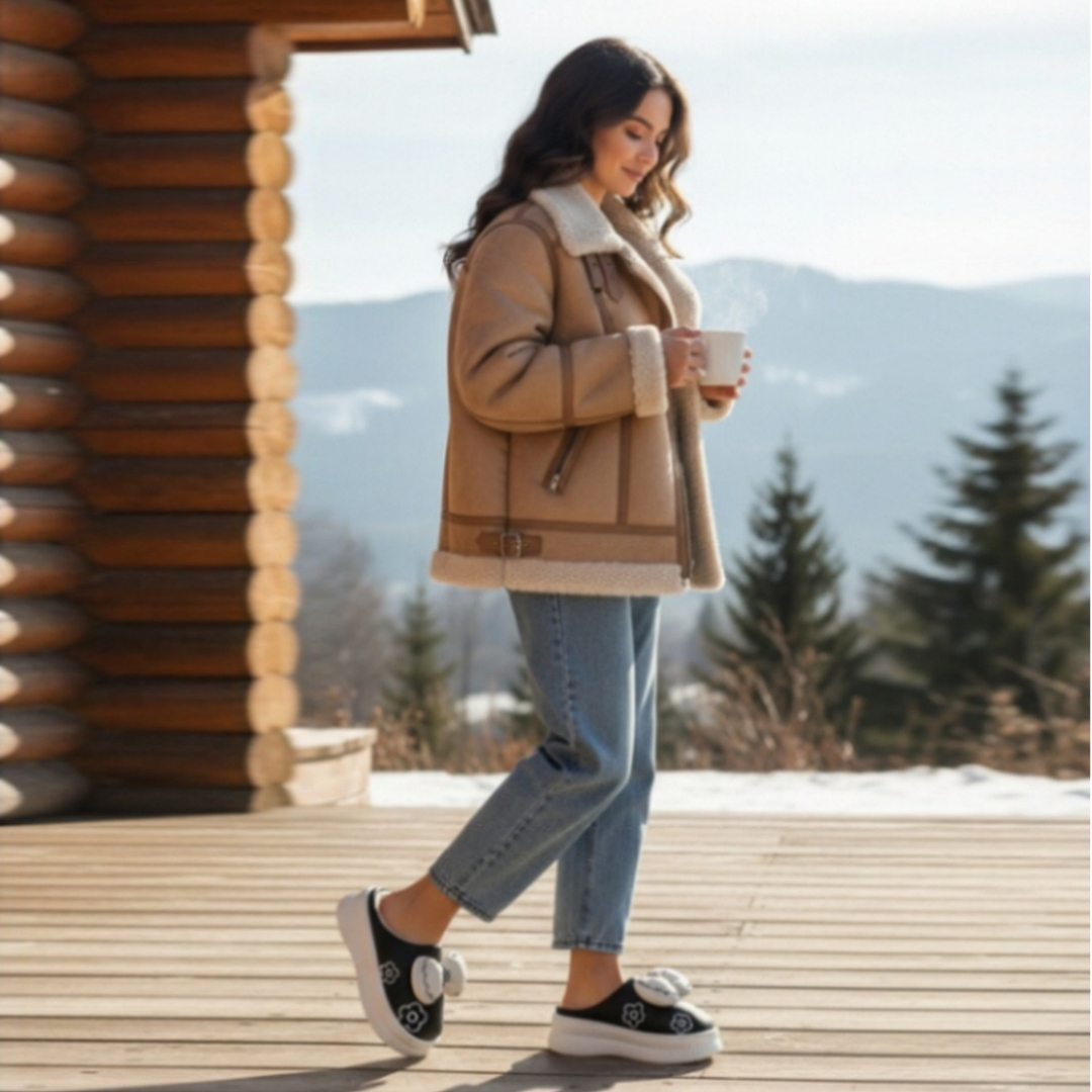 Papuci de casă pufoși și relaxanți, lucrați din materiale moi și călduroase. Sunt alegerea perfectă pentru confort și încălzire. Detalii: • Compoziție: 90% textil, 10% sintetic; • Talpă anti-alunecare, 100% cauciuc; • Înălțime platformă: 4 cm;