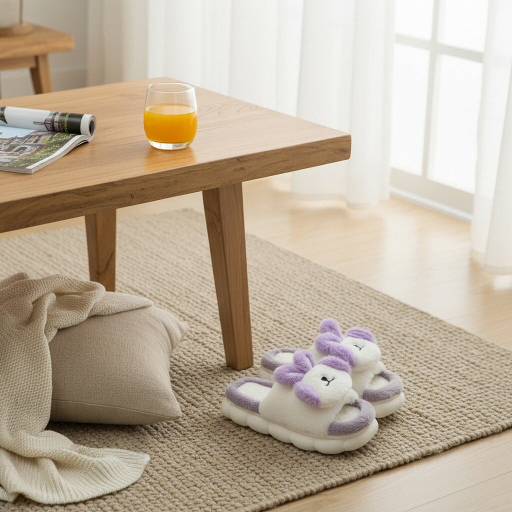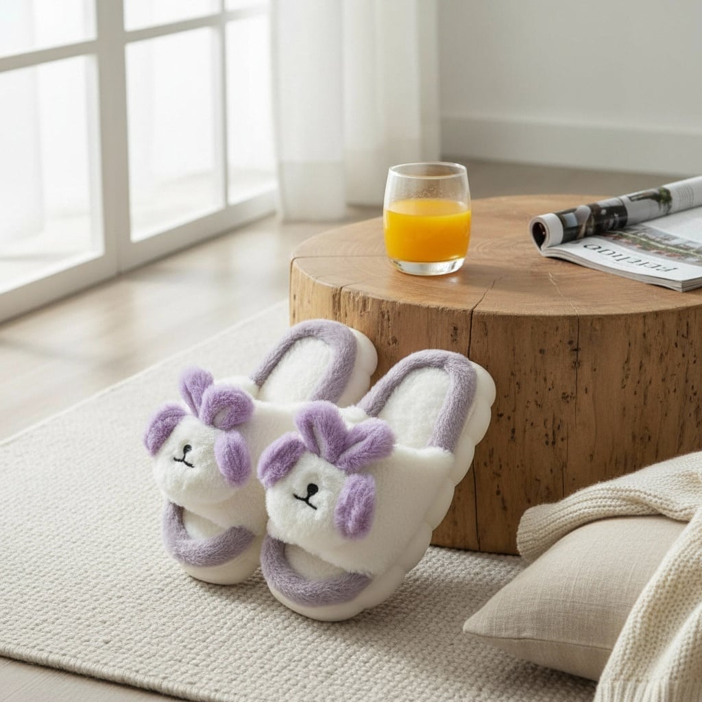 Papuci de casă cu vârf deschis, pufoși și relaxanți, lucrați din materiale moi și călduroase. Sunt alegerea perfectă pentru confort și încălzire. Detalii: • Compoziție: 90% textil, 10% sintetic; • Talpă anti-alunecare, 100% cauciuc; • Înălțime talpă: 3 cm;