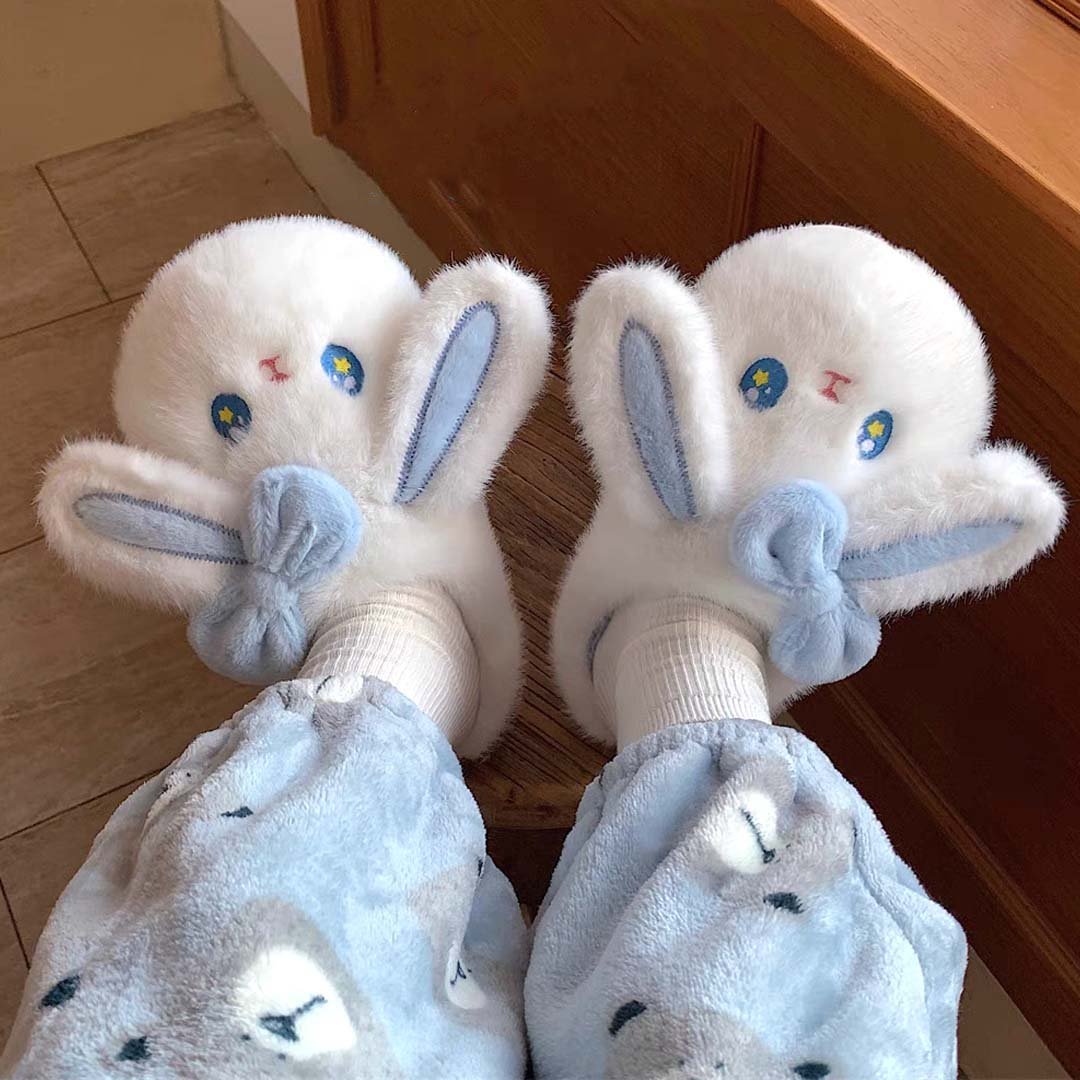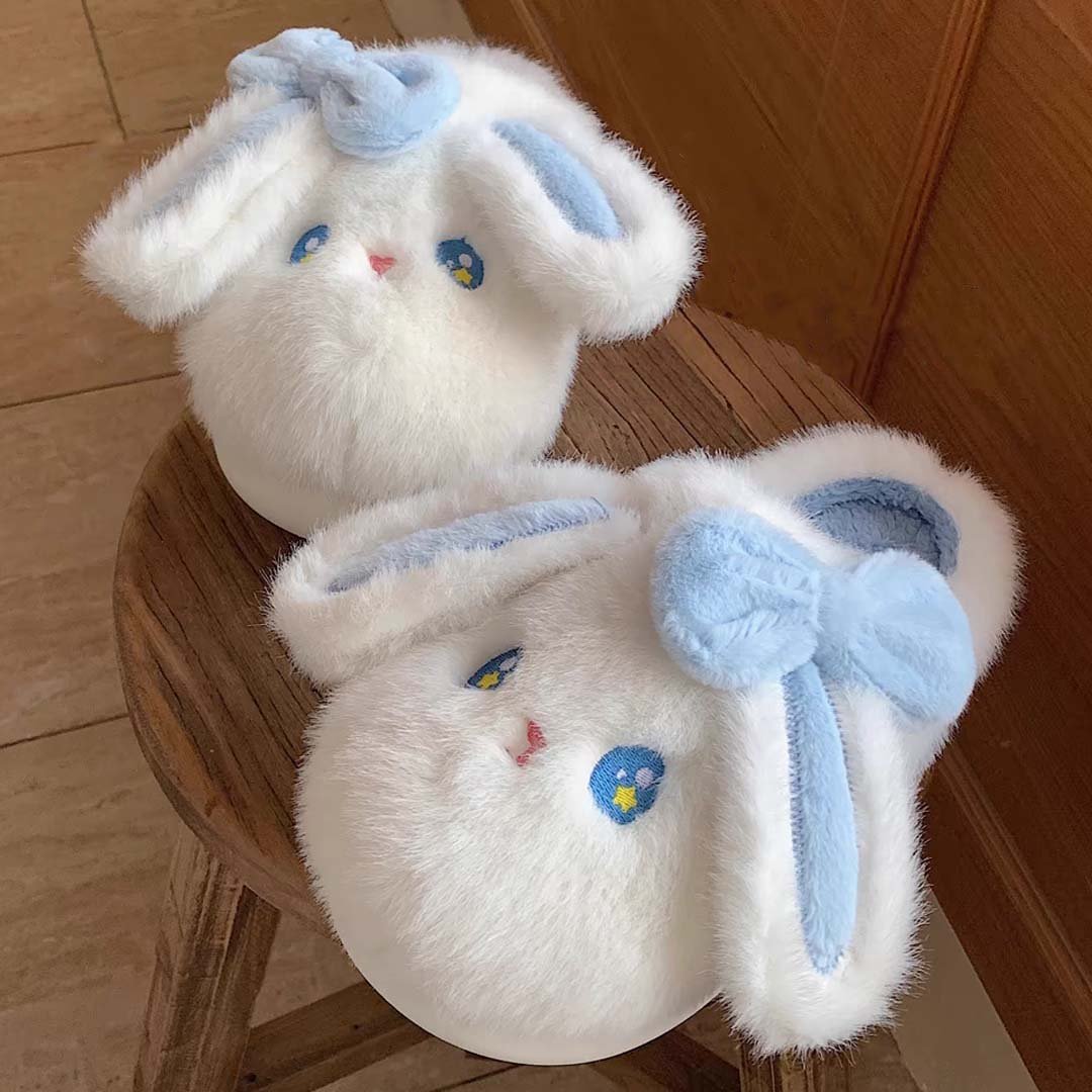 Papuci de casa pufosi, model Iepure amuzant L608alb