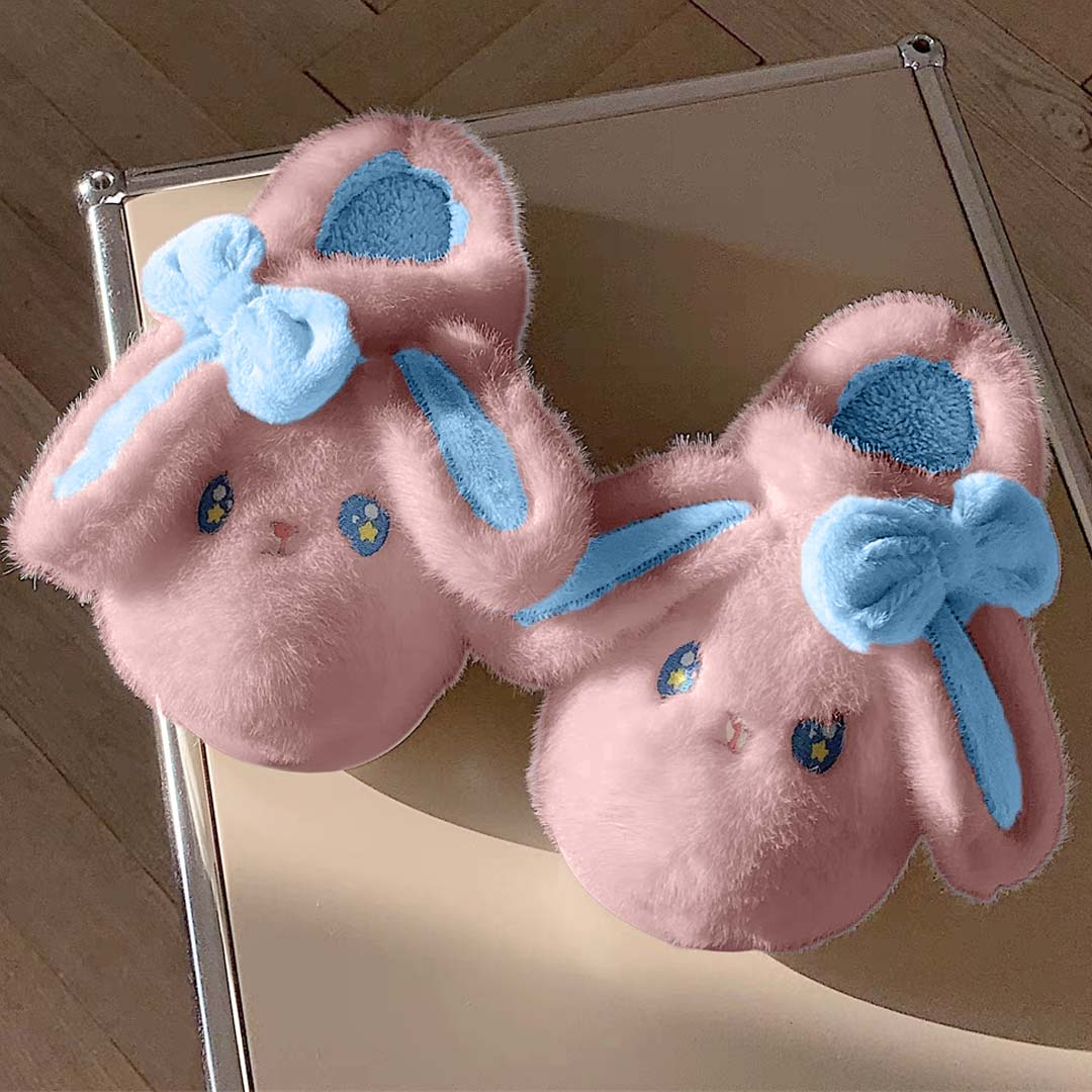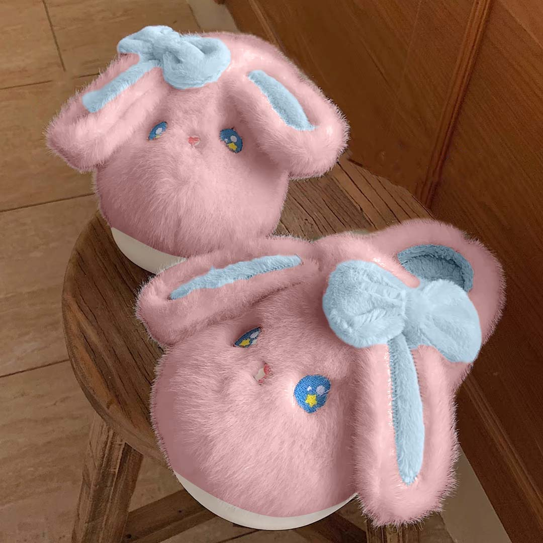Papuci de casa pufosi, model Iepure amuzant L608roz