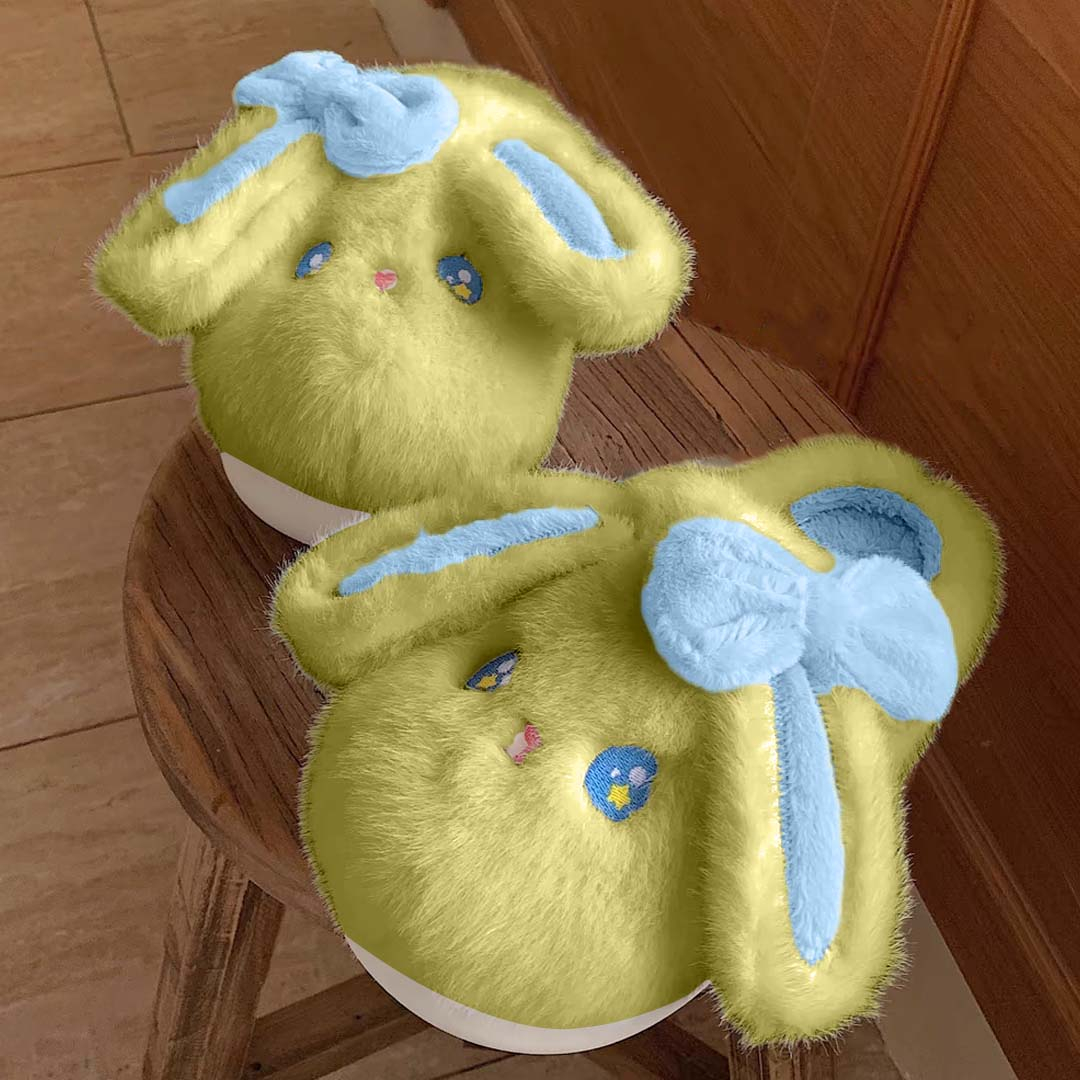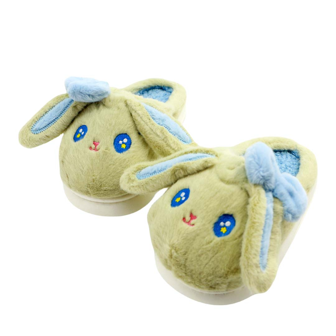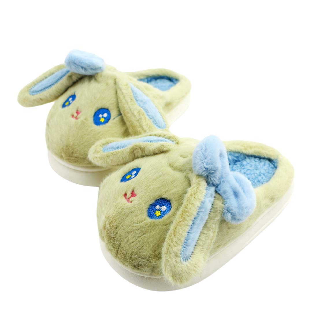 Papuci de casa pufosi, model Iepure amuzant L608verde