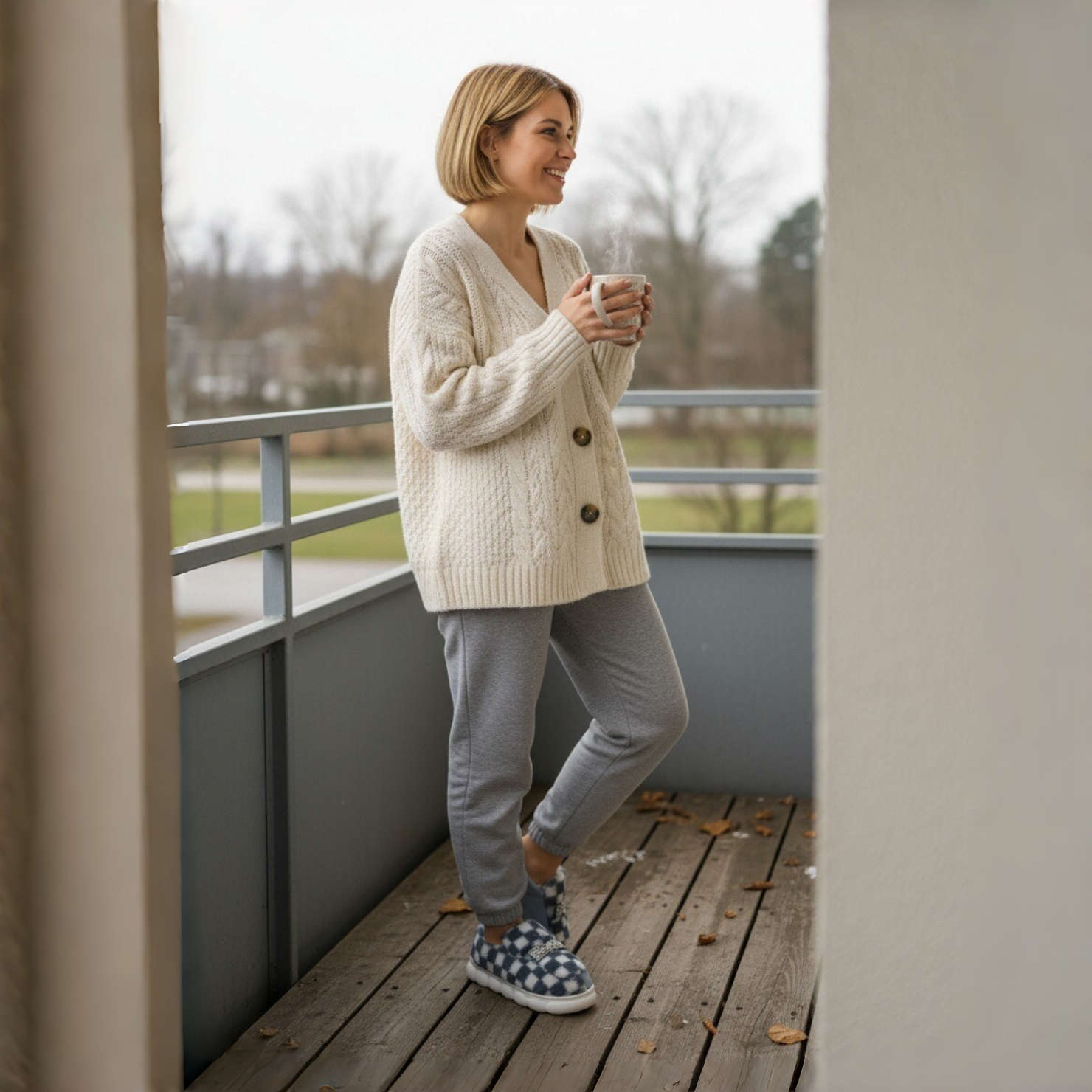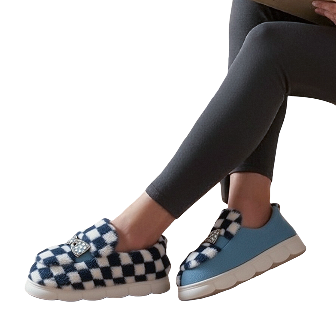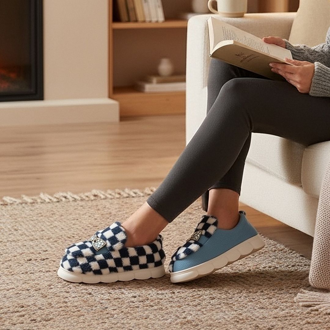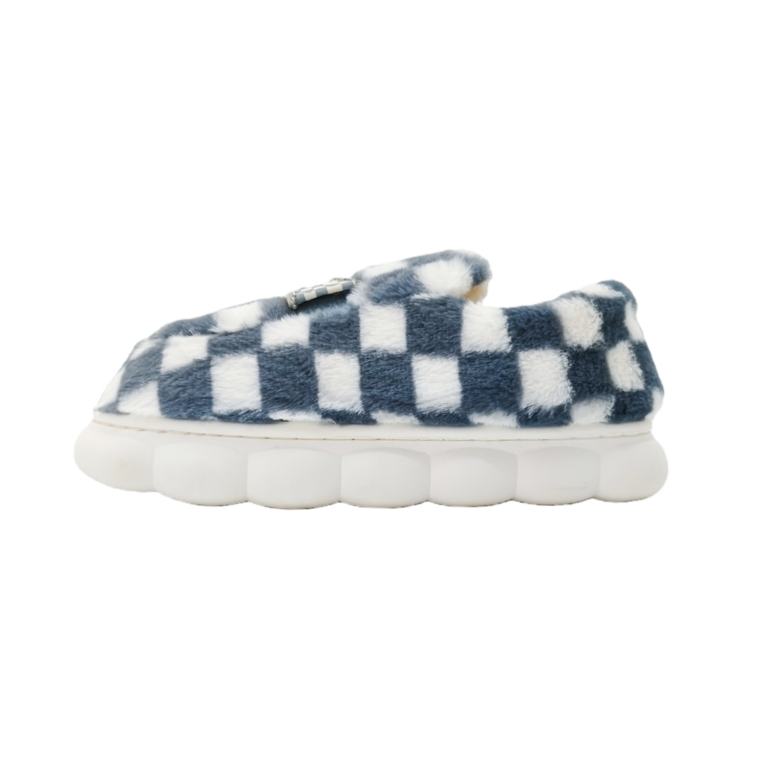 Papuci de casa pufosi, model in carouri F-4gri
