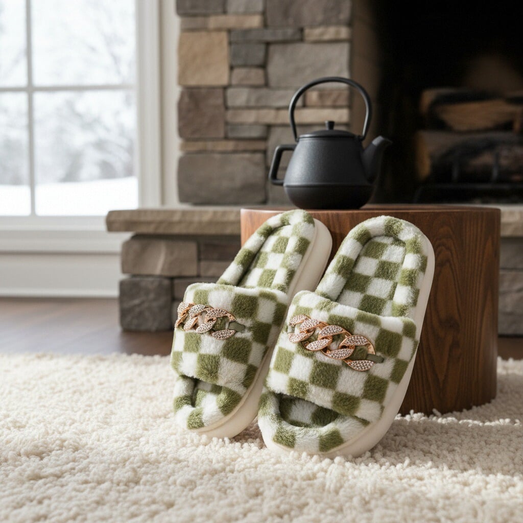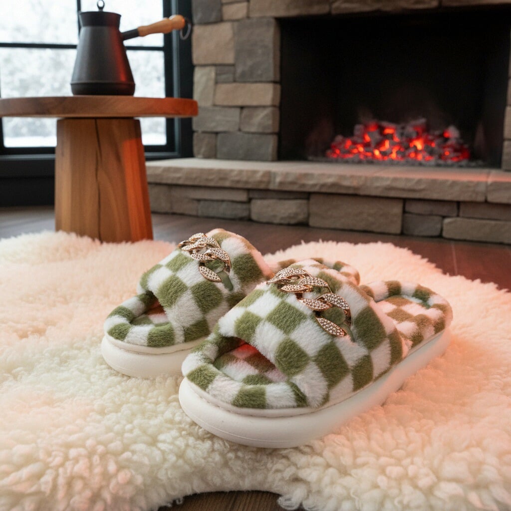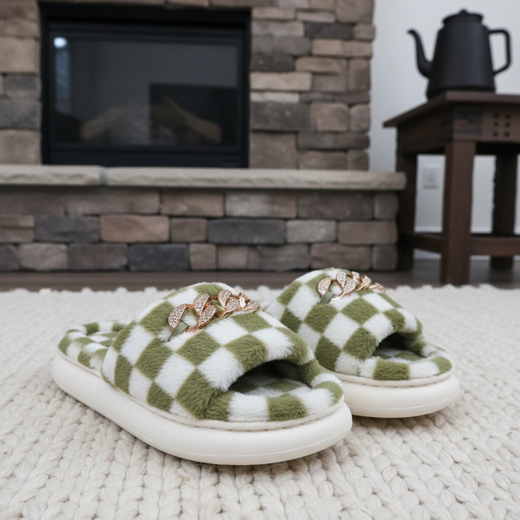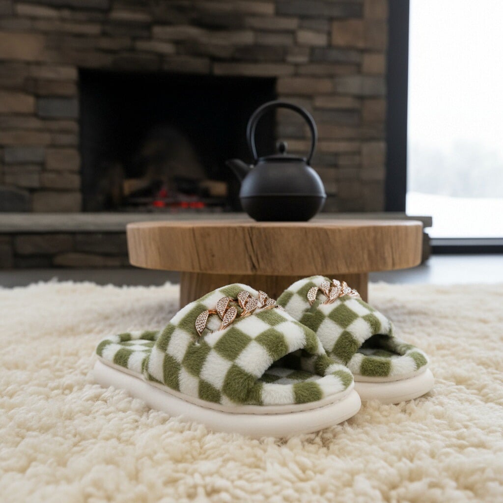 Papuci de casă cu vârf deschis, pufoși și relaxanți, lucrați din materiale moi și călduroase. Sunt alegerea perfectă pentru confort și încălzire. Detalii: • Compoziție: 90% textil, 10% sintetic; • Talpă anti-alunecare, 100% cauciuc; • Înălțime talpă: 2 cm;