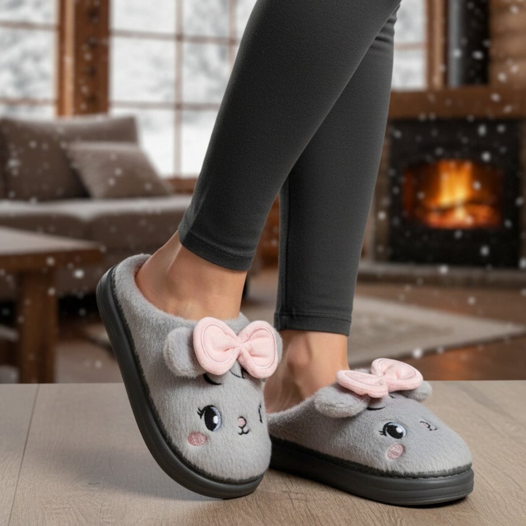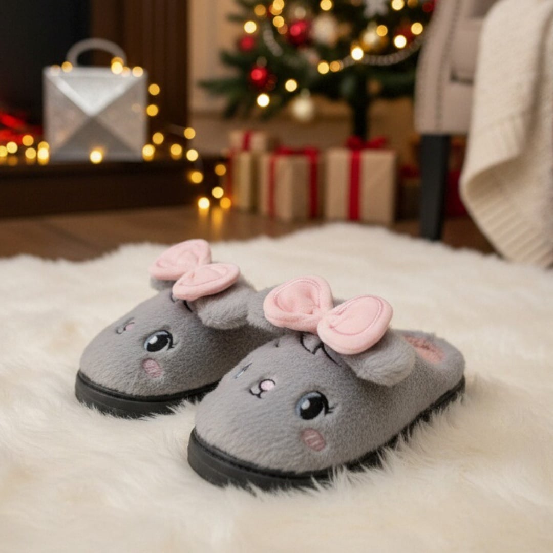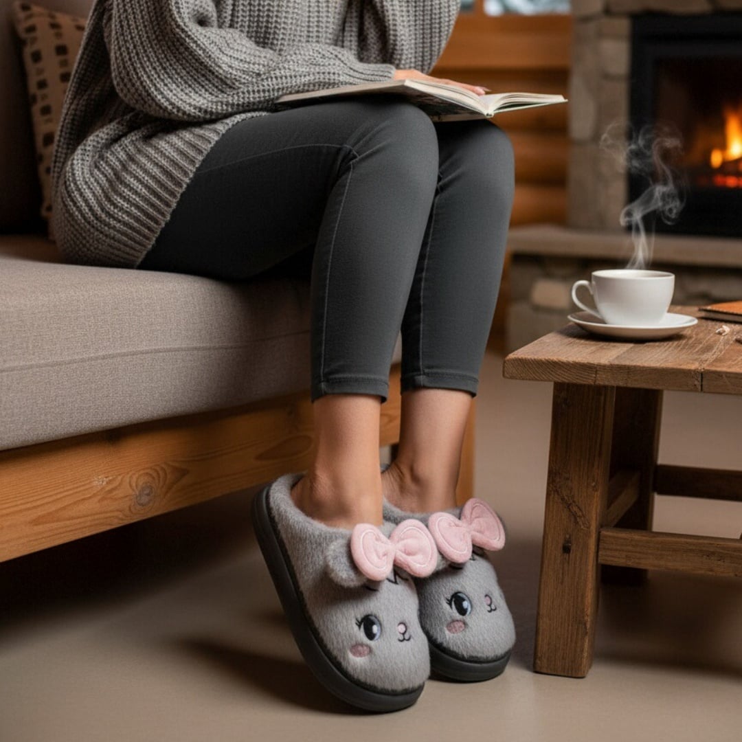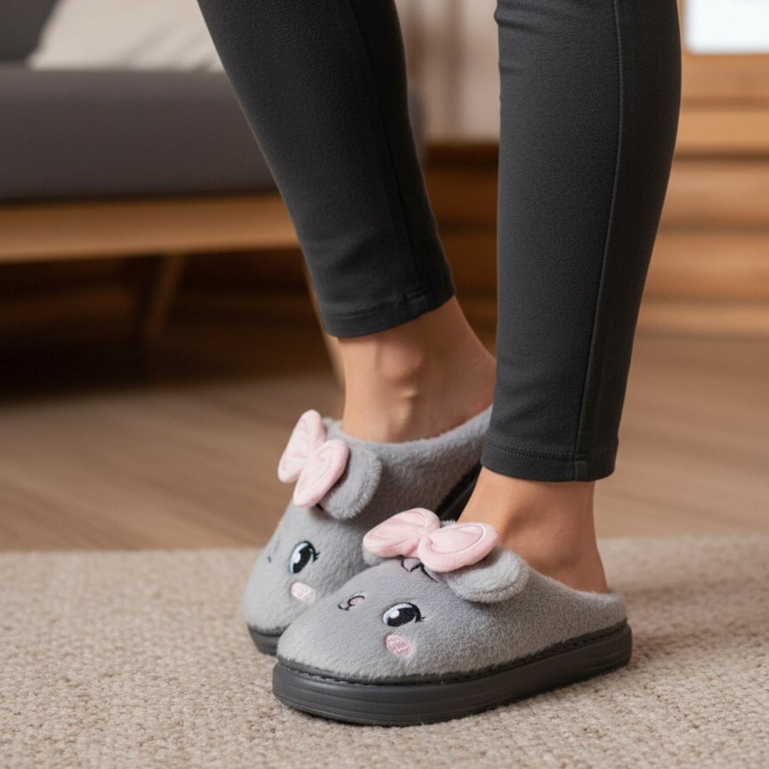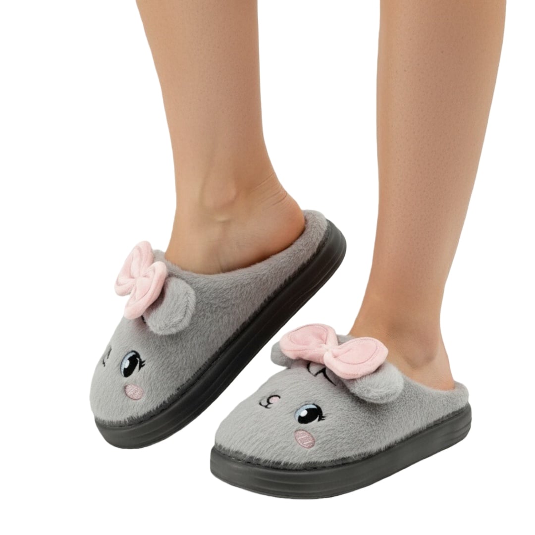 Papuci de casă pufoși și relaxanți, lucrați din materiale moi și călduroase. Sunt alegerea perfectă pentru confort și încălzire.