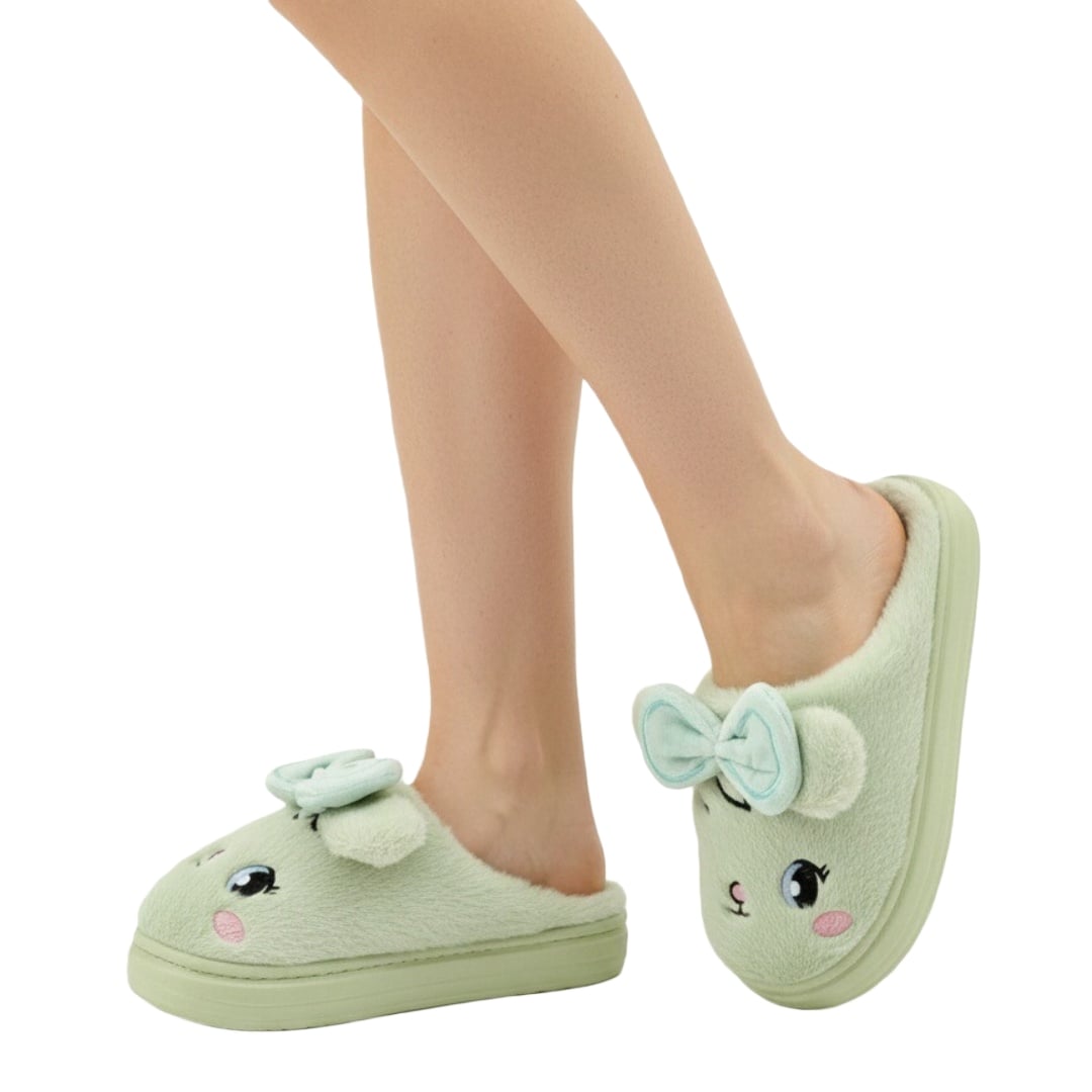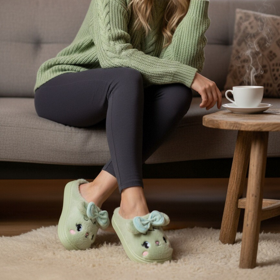 Papuci de casă pufoși și relaxanți, lucrați din materiale moi și călduroase. Sunt alegerea perfectă pentru confort și încălzire.