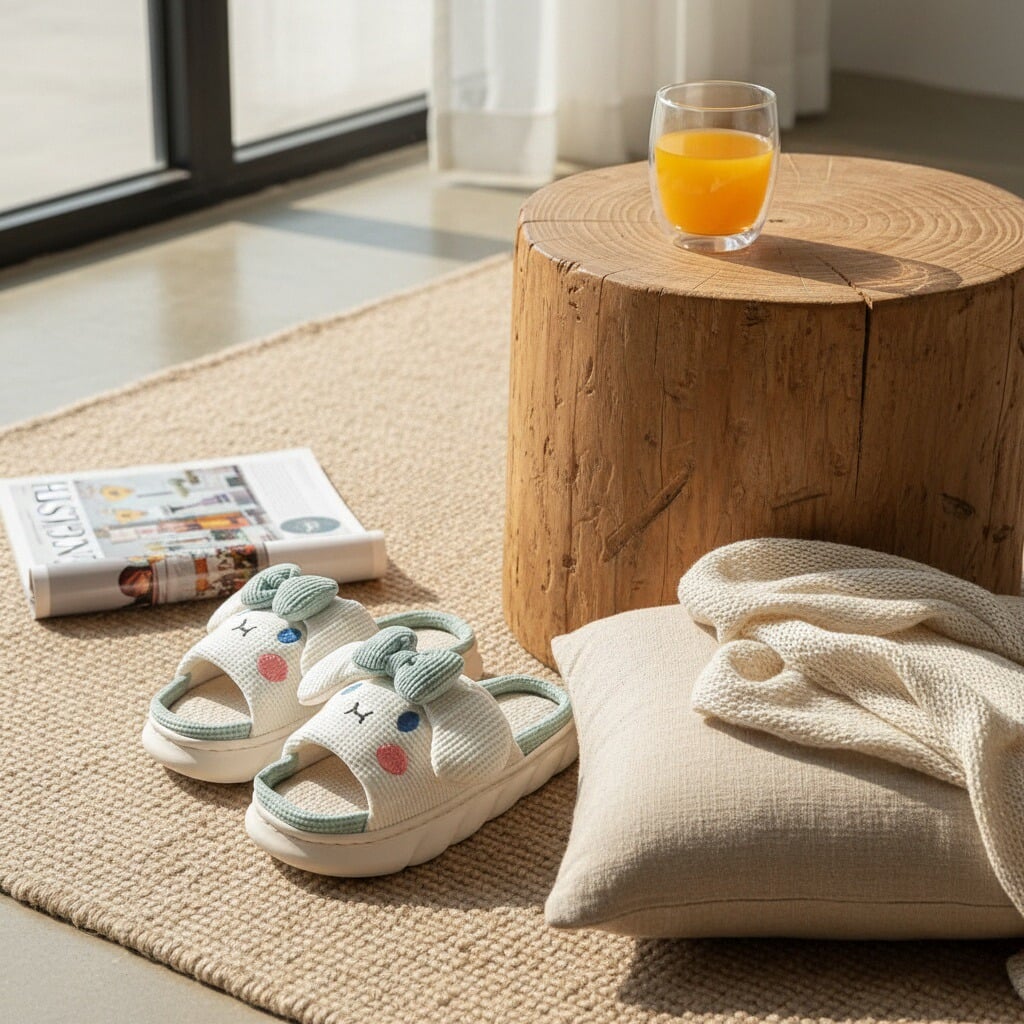 Papuci de casă cu vârf deschis, pufoși și relaxanți, lucrați din materiale moi și călduroase. Sunt alegerea perfectă pentru confort și încălzire. Detalii: • Compoziție: 90% textil, 10% sintetic; • Talpă anti-alunecare, 100% cauciuc; • Înălțime talpă: 2 cm;