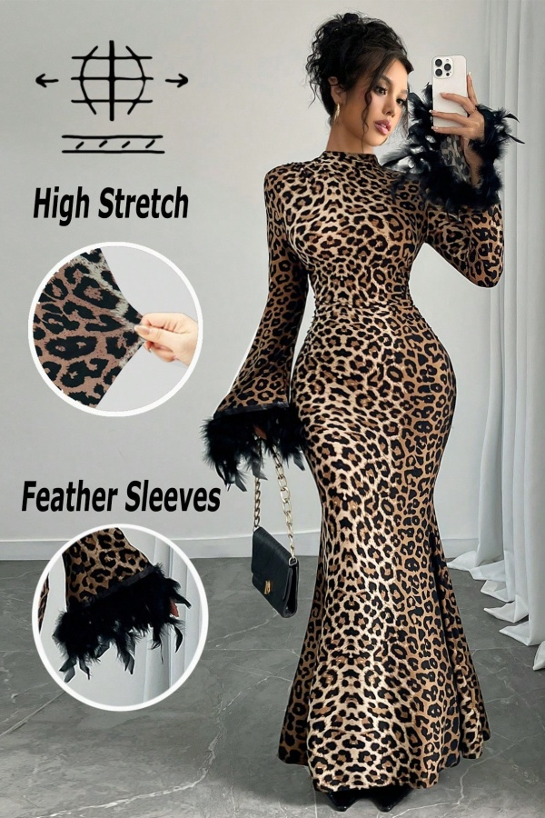 Rochie de seara sexy cu imprimeu Leopard, eleganta si potrivita pentru ocazii speciale, casual, petreceri acasa, s.a.