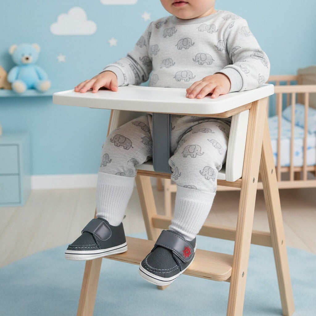 Botoșei bebe realizați din material textil și piele ecologică, fini și plăcuți la atingere. Sunt o alegere încântătoare pentru a încălzi și proteja piciorușele delicate ale celor mici. Talpa oferă aderență suplimentară, asigurând că bebelușul se poate deplasa în siguranță chiar și pe suprafețele alunecoase. Această caracteristică joacă un rol crucial în perioada când bebelușul începe să-și dezvolte abilitățile motorii și să descopere lumea înconjurătoare.