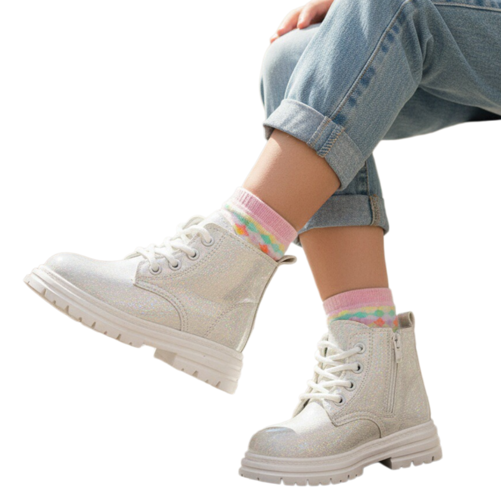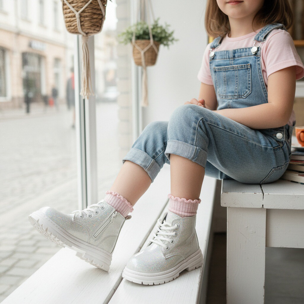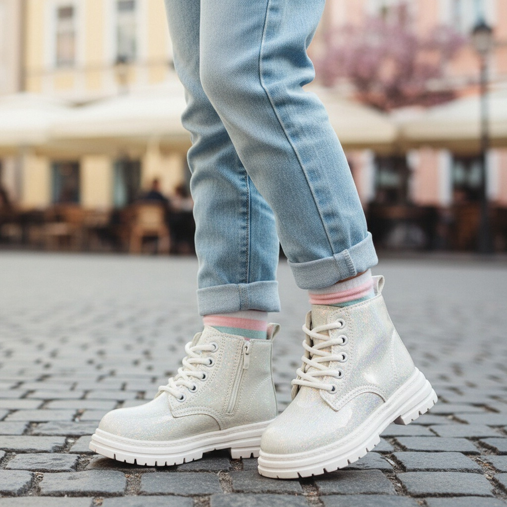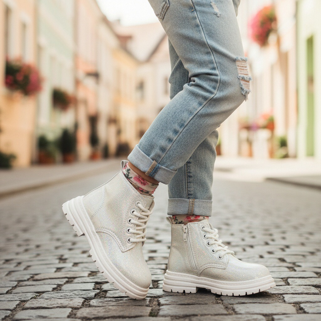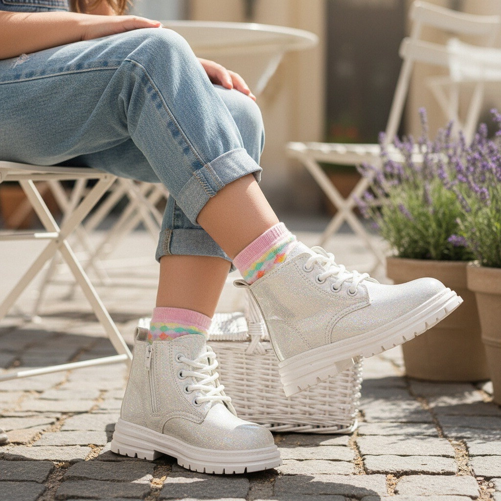 Aceste ghete pline de farmec sunt o alegere versatilă pentru cei mici. Emană un stil rafinat și sunt ușor de asortat cu diverse ținute vestimentare. Platforma ușor înaltă, realizată din cauciuc antiderapant, oferă susținere și amortizare, permițându-le copiilor să se miște cu lejeritate și încredere în timpul deplasărilor.