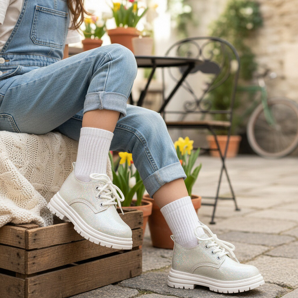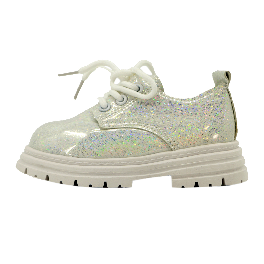 Acești pantofi casual plini de farmec sunt o alegere versatilă pentru activitățile de zi cu zi. Emană un stil rafinat și sunt ușor de asortat cu diverse ținute vestimentare. Platforma ușor înaltă, realizată din cauciuc antiderapant, oferă susținere și amortizare, permițându-le copiilor să se miște cu lejeritate și încredere în timpul deplasărilor.
