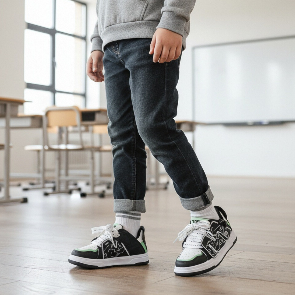 Acești pantofi sport sunt alegerea ideală pentru copiii care vor să îmbine confortul cu un design modern. Oferă libertate de mișcare, stabilitate și confort în timpul mișcărilor. Talpa reprezintă o opțiune elegantă și versatilă, este ușoară, are o bună aderență, dând astfel un plus de comoditate în timpul mersului.