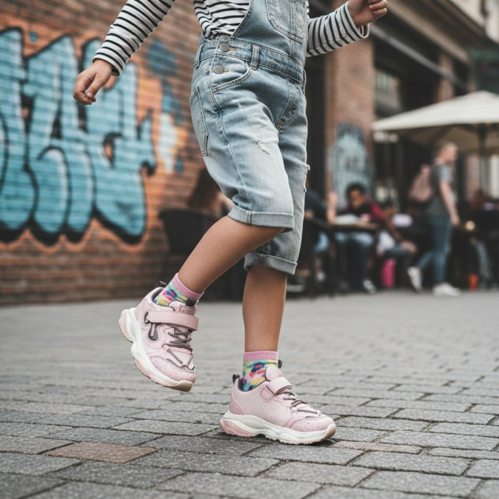 Acești pantofi sport sunt alegerea ideală pentru copiii care vor să îmbine confortul cu un design modern. Sunt realizați din material super respirabil, moale și confortabil, absoarbe rapid transpirația. Oferă libertate de mișcare, stabilitate și confort în timpul mișcărilor. Interiorul oferă confort de utilizare. Talpa este ușoară, are o bună aderență, dând astfel un plus de comoditate în timpul mersului. Pentru o potrivire perfectă și o incălțare facilă, pantofii au sistem de închidere șiret + velcro(scai).    ​​​