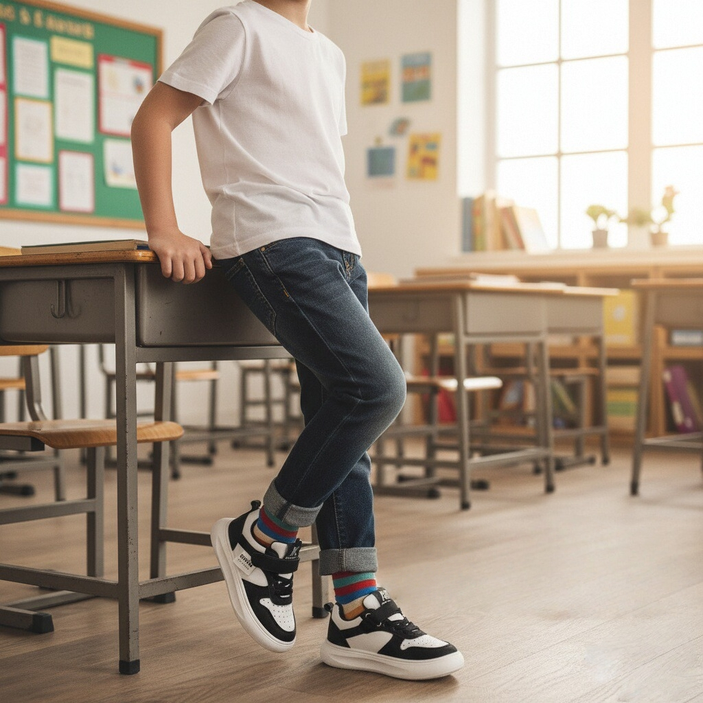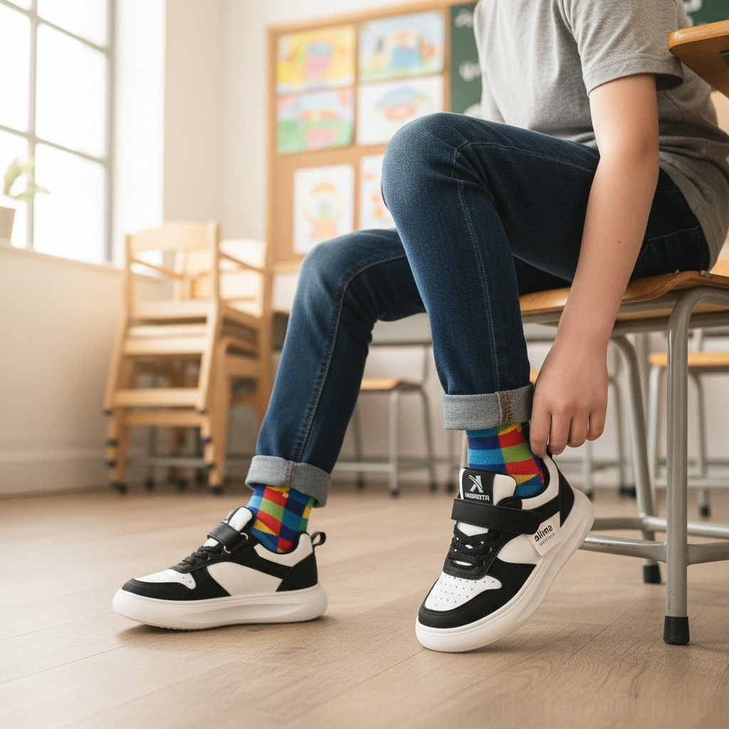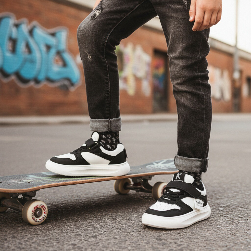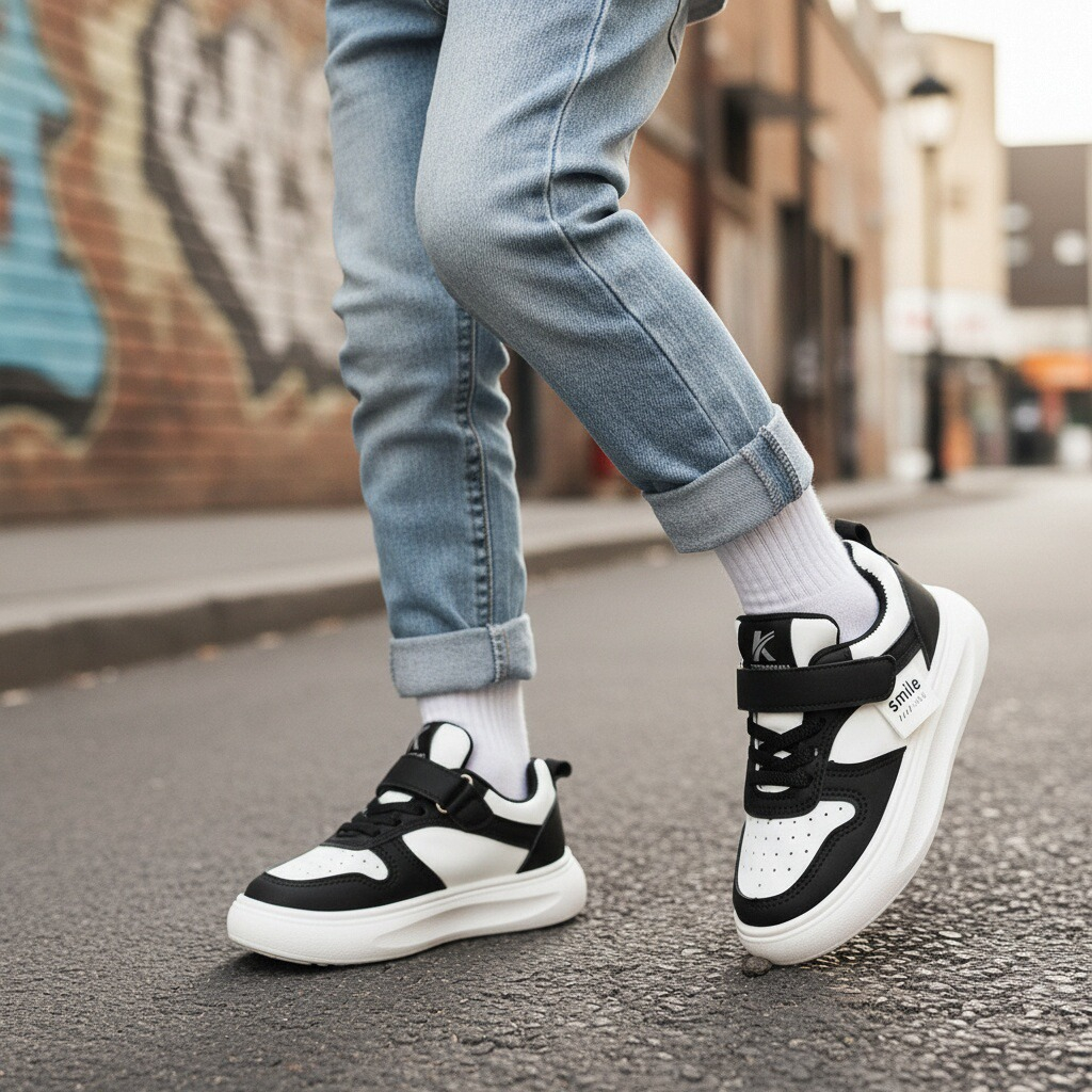 Acești pantofi sport sunt alegerea ideală pentru copiii care vor să îmbine confortul cu un design modern. Oferă libertate de mișcare, stabilitate și confort în timpul mișcărilor. Talpa reprezintă o opțiune elegantă și versatilă, este ușoară, are o bună aderență, dând astfel un plus de comoditate în timpul mersului. Pentru o potrivire perfectă și o incălțare facilă, pantofii au sistem de închidere șiret + velcro(scai).