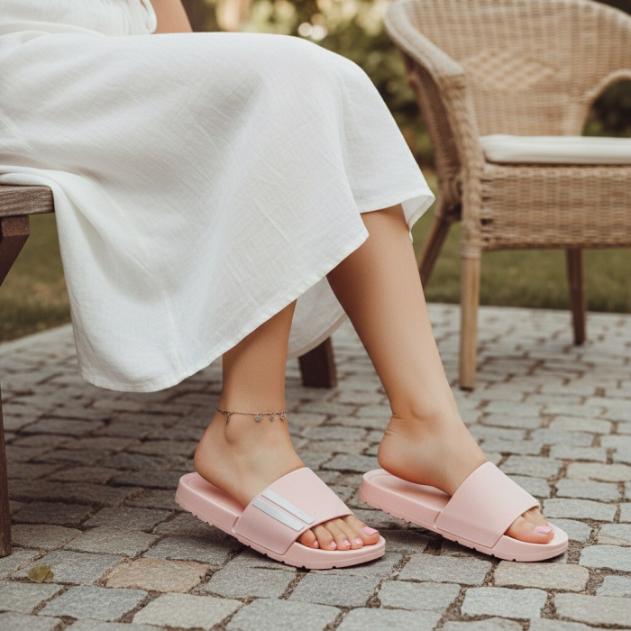 Detalii: • Utilizare versatilă: se potrivesc atât în exterior cât și în interior (dormitor, baie, piscină, plajă, spa-uri, ș.a.); • Proiectaţi pentru respirabilitate; • Au o bună aderență pentru a te împiedica să aluneci pe suprafețele umede; • Materialul este moale și extrem de confortabil; •Compoziție: 70% EVA, 30% PVC; •Înălțime talpă: 2 cm; • Ghid mărimi: