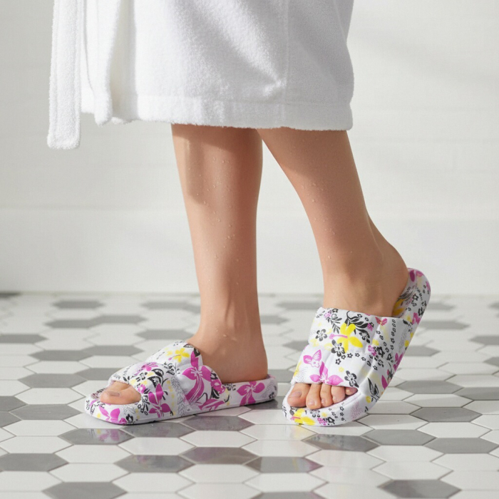 Detalii: • Acești papuci veseli cu model drăguț, vor aduce mai multă culoare în viața ta; • Design unic: adaugă o notă de umor şi personalitate stilului tău; • Utilizare versatilă: se potrivesc atât în exterior cât și în interior (dormitor, baie, piscină, plajă, spa-uri, ș.a.); • Proiectaţi pentru respirabilitate; • Au o bună aderență pentru a te împiedica să aluneci pe suprafețele umede; • Materialul este moale și extrem de confortabil; •Compoziție: 100% EVA; • Înălțime talpă: 2.5 cm; • Ghid mărimi: