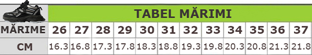 Acești pantofi sport sunt alegerea ideală pentru copiii care vor să îmbine confortul cu un design modern. Sunt realizați din material super respirabil, moale și confortabil, absoarbe rapid transpirația. Oferă libertate de mișcare, stabilitate și confort în timpul mișcărilor. Interiorul oferă confort de utilizare. Talpa este ușoară, are o bună aderență, dând astfel un plus de comoditate în timpul mersului. Pentru o potrivire perfectă și o incălțare facilă, pantofii au sistem de închidere șiret + velcro(scai).    ​​​