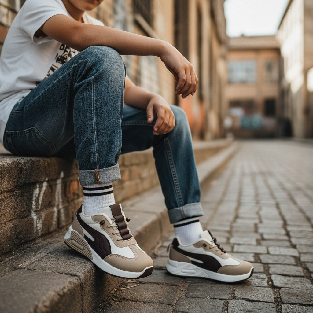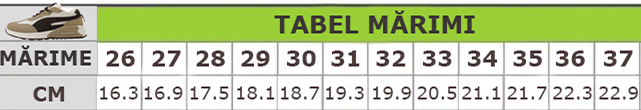 Acești pantofi sport sunt alegerea ideală pentru copiii care vor să îmbine confortul cu un design modern. Sunt realizați din material super respirabil, moale și confortabil, absoarbe rapid transpirația. Oferă libertate de mișcare, stabilitate și confort în timpul mișcărilor. Interiorul oferă confort de utilizare. Talpa este ușoară, are o bună aderență, dând astfel un plus de comoditate în timpul mersului.   ​​​