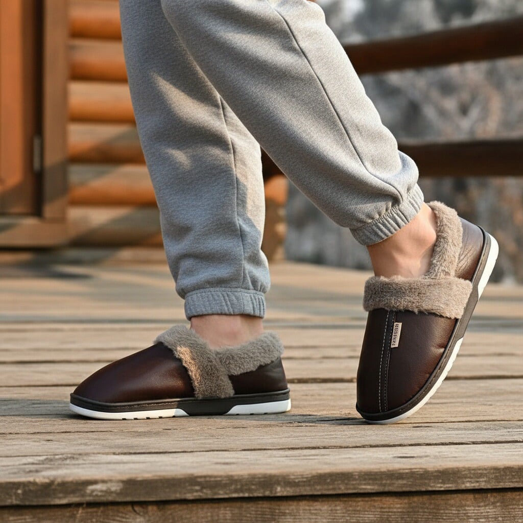 Papuci de casa pufosi si relaxanti, lucrati din materiale moi si calduroase. Sunt alegerea perfecta pentru confort si incalzire. Detalii: • Compozitie: 90% textil, 10% sintetic; • Talpa anti-alunecare, 100% cauciuc; • Inaltime talpa: 2 cm;