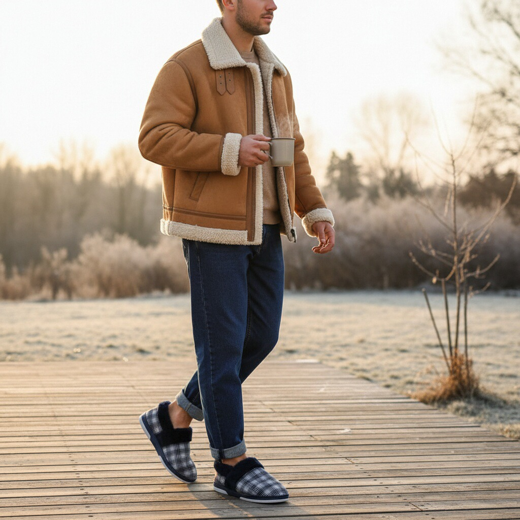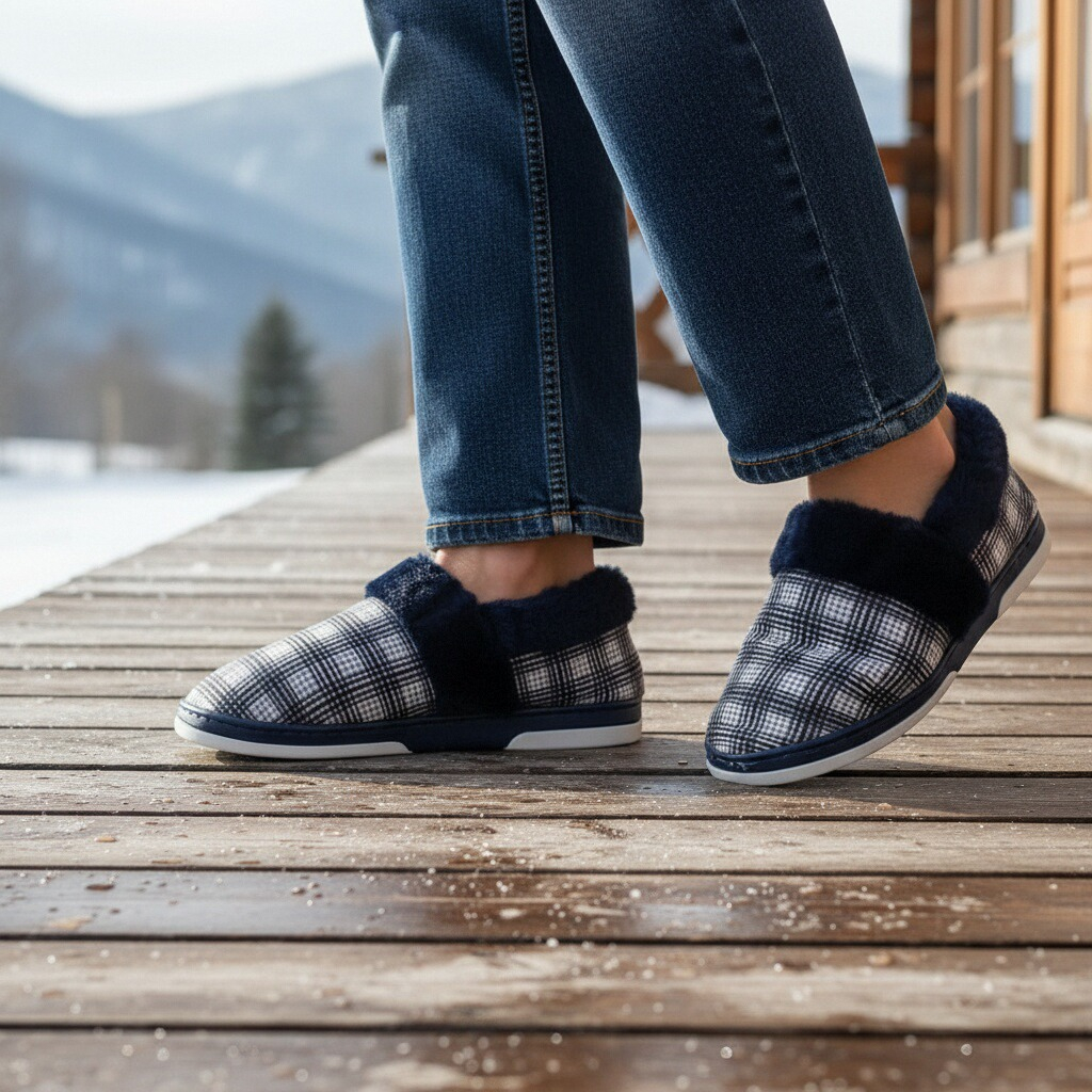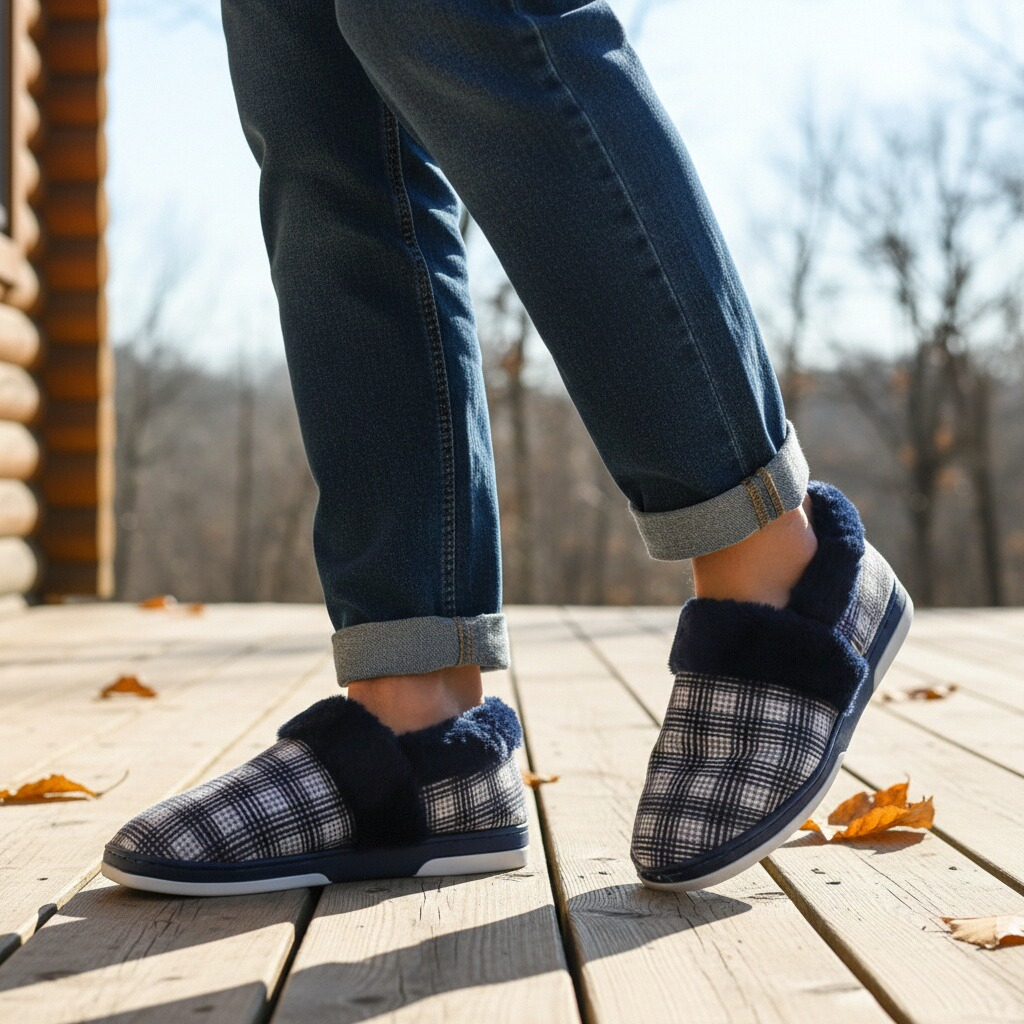 Papuci de casa pufosi si relaxanti, lucrati din materiale moi si calduroase. Sunt alegerea perfecta pentru confort si incalzire.