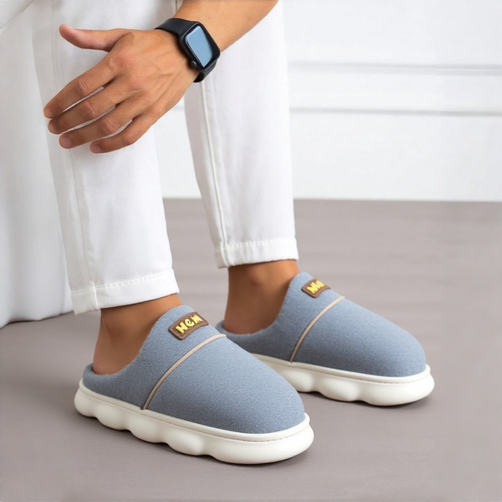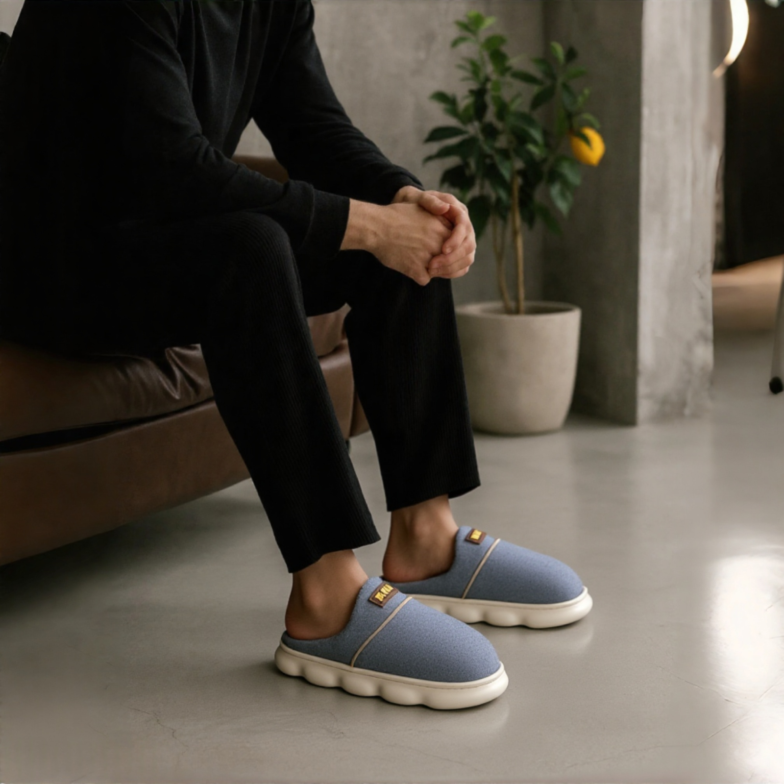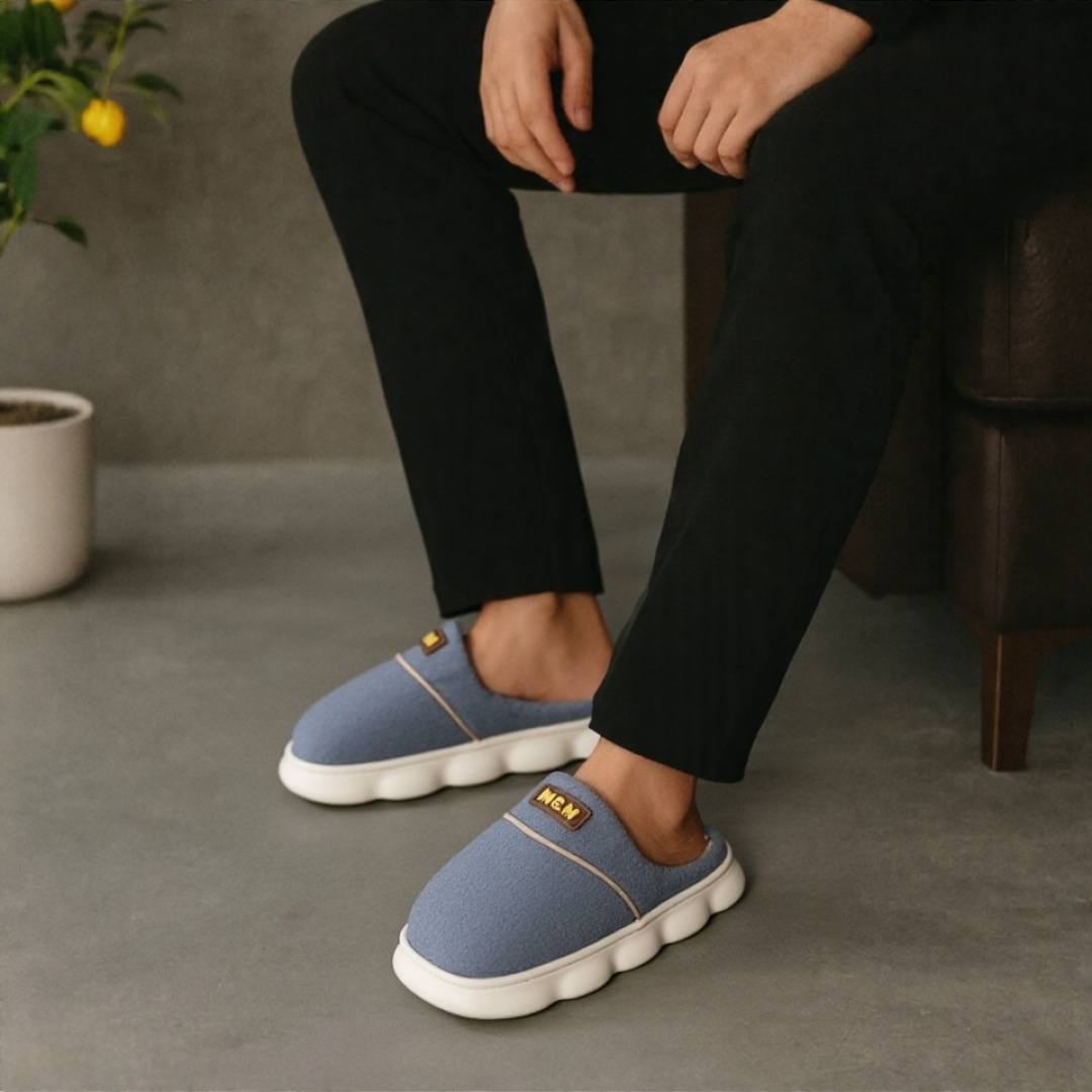 Papuci de casă pufoși și relaxanți, lucrați din materiale moi și călduroase. Sunt alegerea perfectă pentru confort și încălzire.