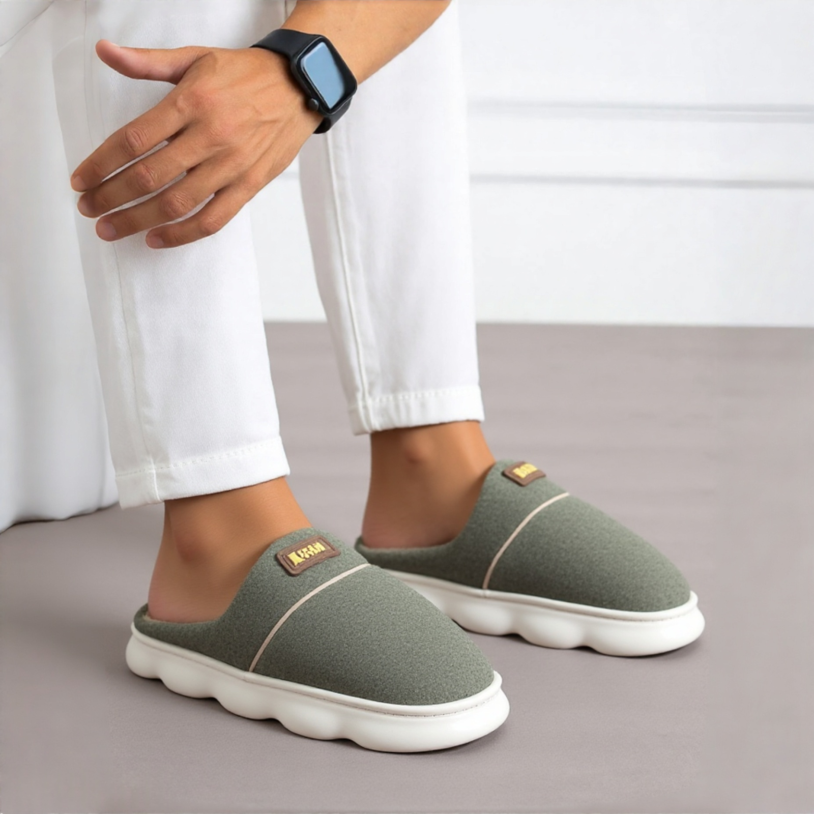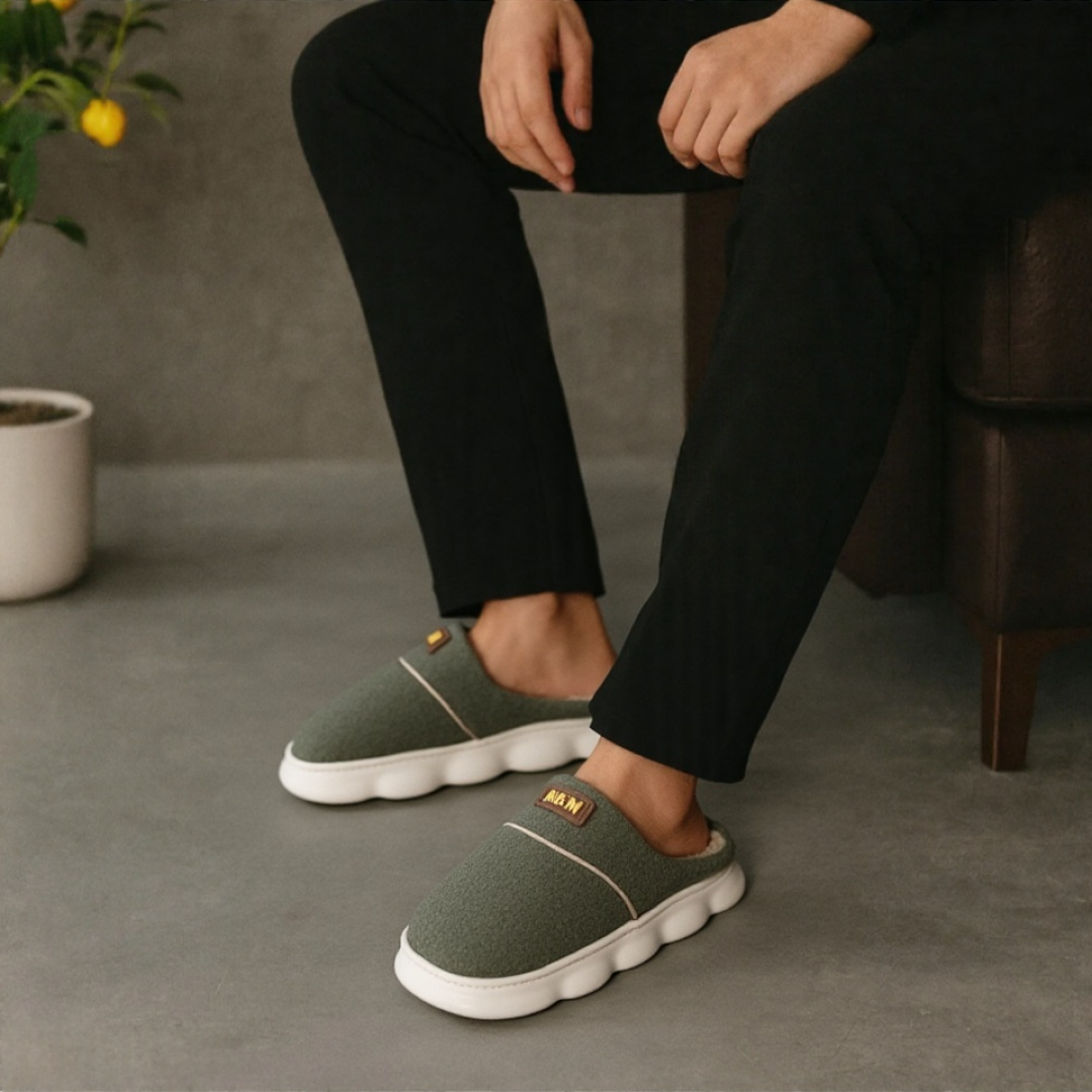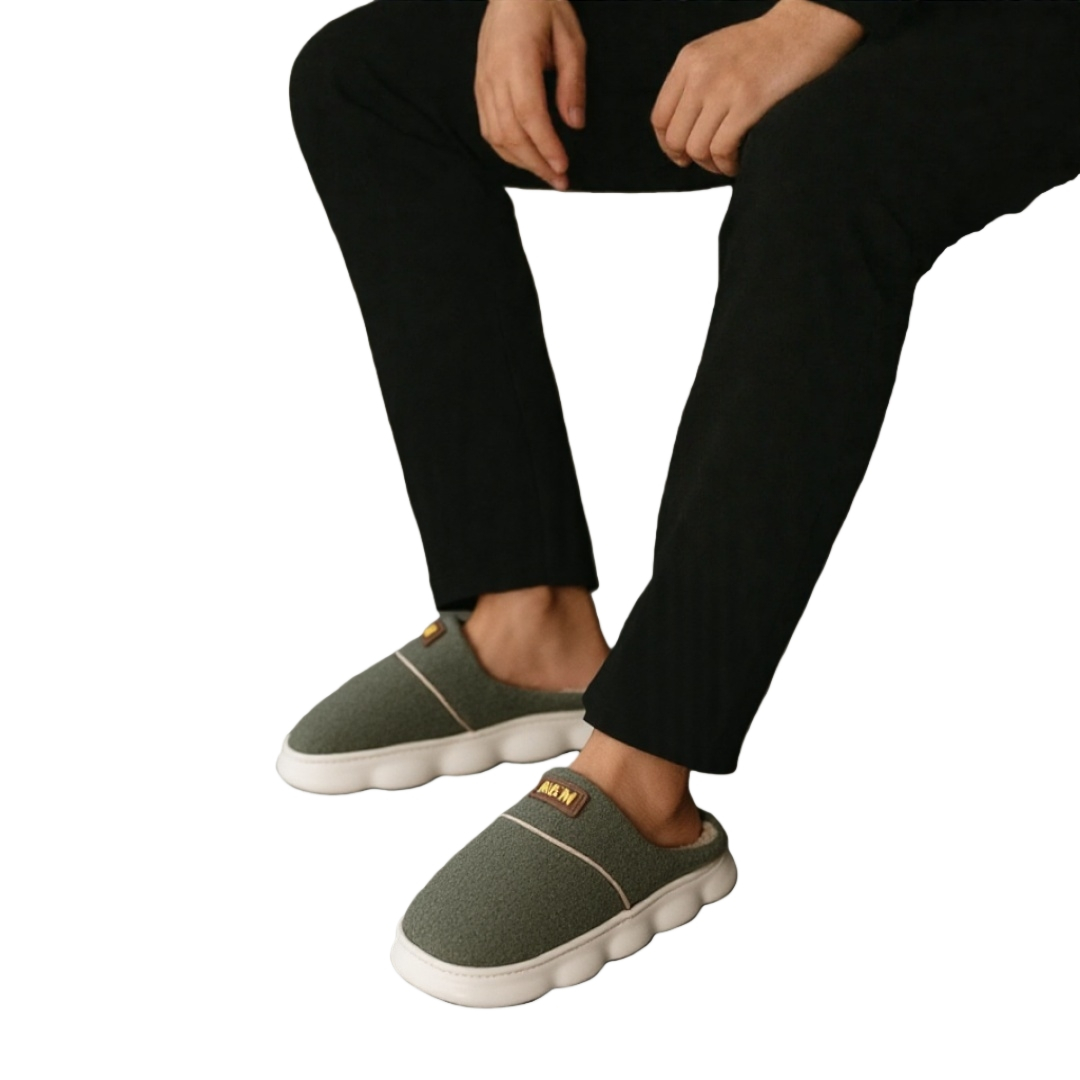 Papuci de casă pufoși și relaxanți, lucrați din materiale moi și călduroase. Sunt alegerea perfectă pentru confort și încălzire.