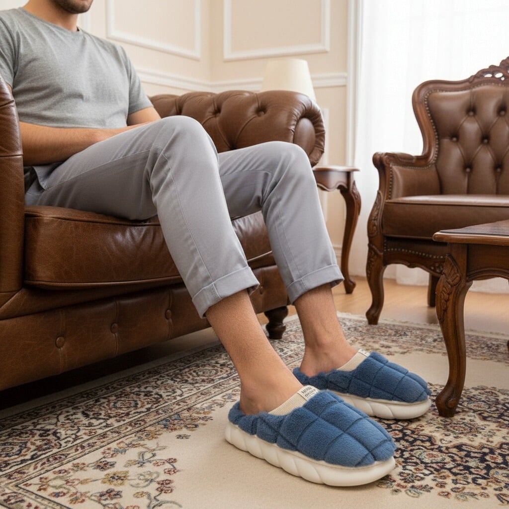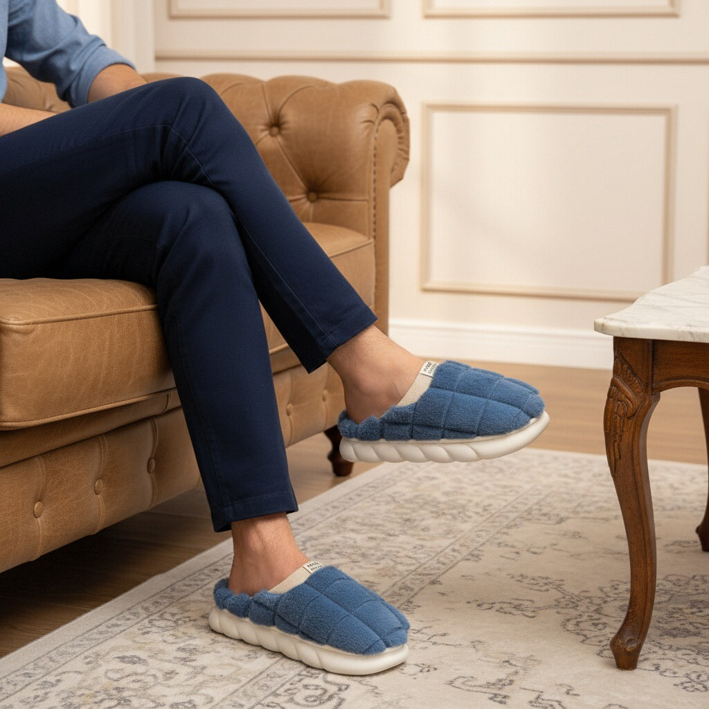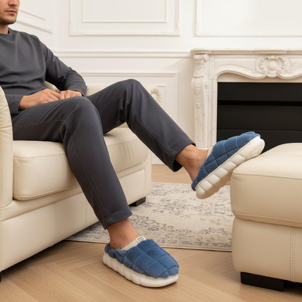 Papuci de casă pufoși și relaxanți, lucrați din materiale moi și călduroase. Sunt alegerea perfectă pentru confort și încălzire.
