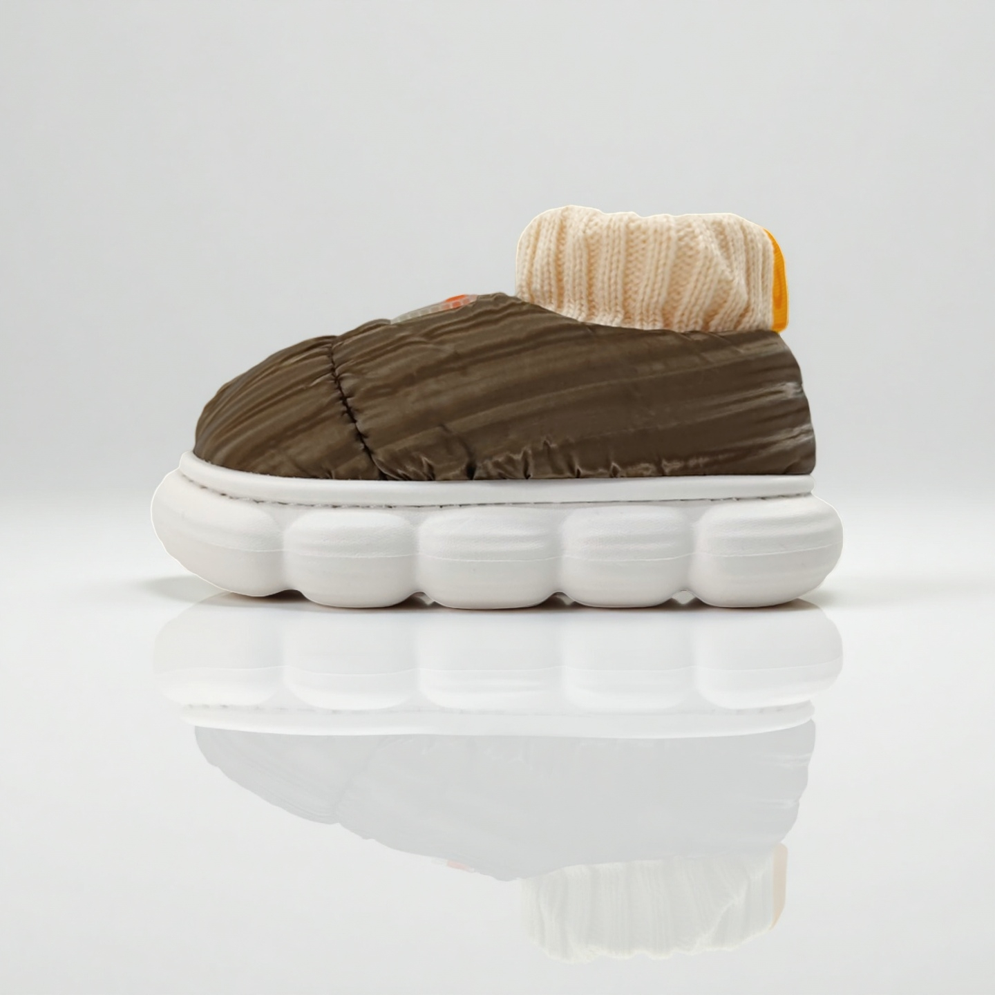 Acești papuci de bumbac oferă confort și căldură în timpul sezonului rece. Impermeabili și rezistenți la alunecare, acești papuci sunt siguri și confortabili la mers chiar și pe suprafețe exterioare. Talpa ușor înaltă oferă căldură și suport suplimentar, sporind confortul în timpul iernii. Ideali pentru relaxare acasă și uz casnic, dar și pentru ieșiri scurte în exterior.