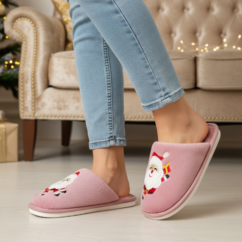 Papuci de casă pufoși și relaxanți cu tematică Crăciun, lucrați din materiale moi și călduroase. Sunt alegerea perfectă pentru confort și încălzire. Detalii: • Compoziție: 70% textil, 30% sintetic; • Talpă anti-alunecare, 100% cauciuc; • Înălțime talpă: 1.5 cm;