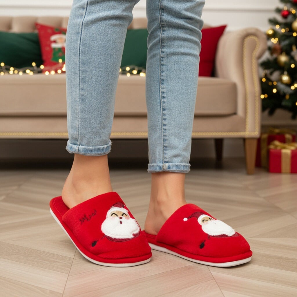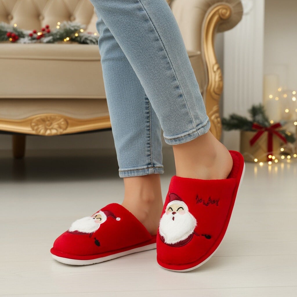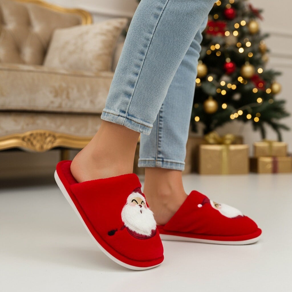 Papuci de casă pufoși și relaxanți cu tematică Crăciun, lucrați din materiale moi și călduroase. Sunt alegerea perfectă pentru confort și încălzire. Detalii: • Compoziție: 90% textil, 10% sintetic; • Talpă anti-alunecare, 100% cauciuc; • Înălțime talpă: 1.5 cm;