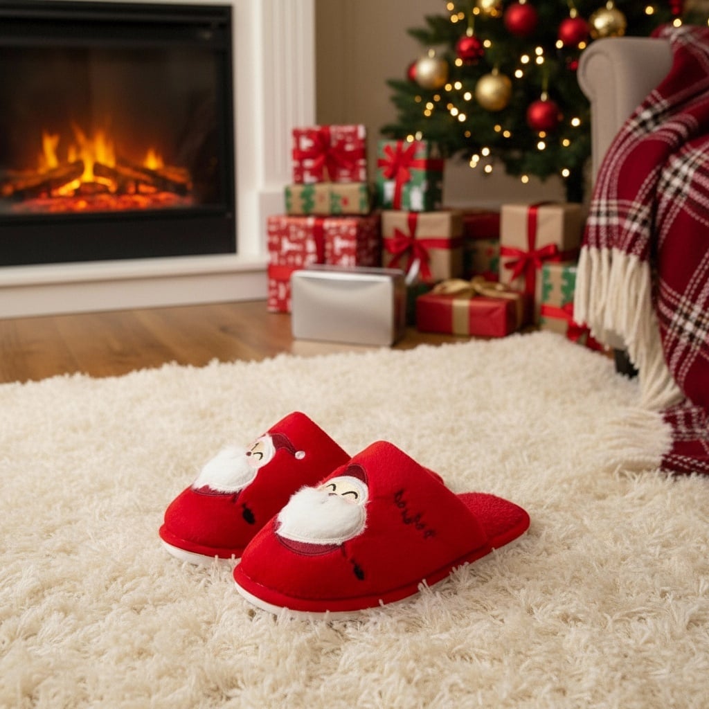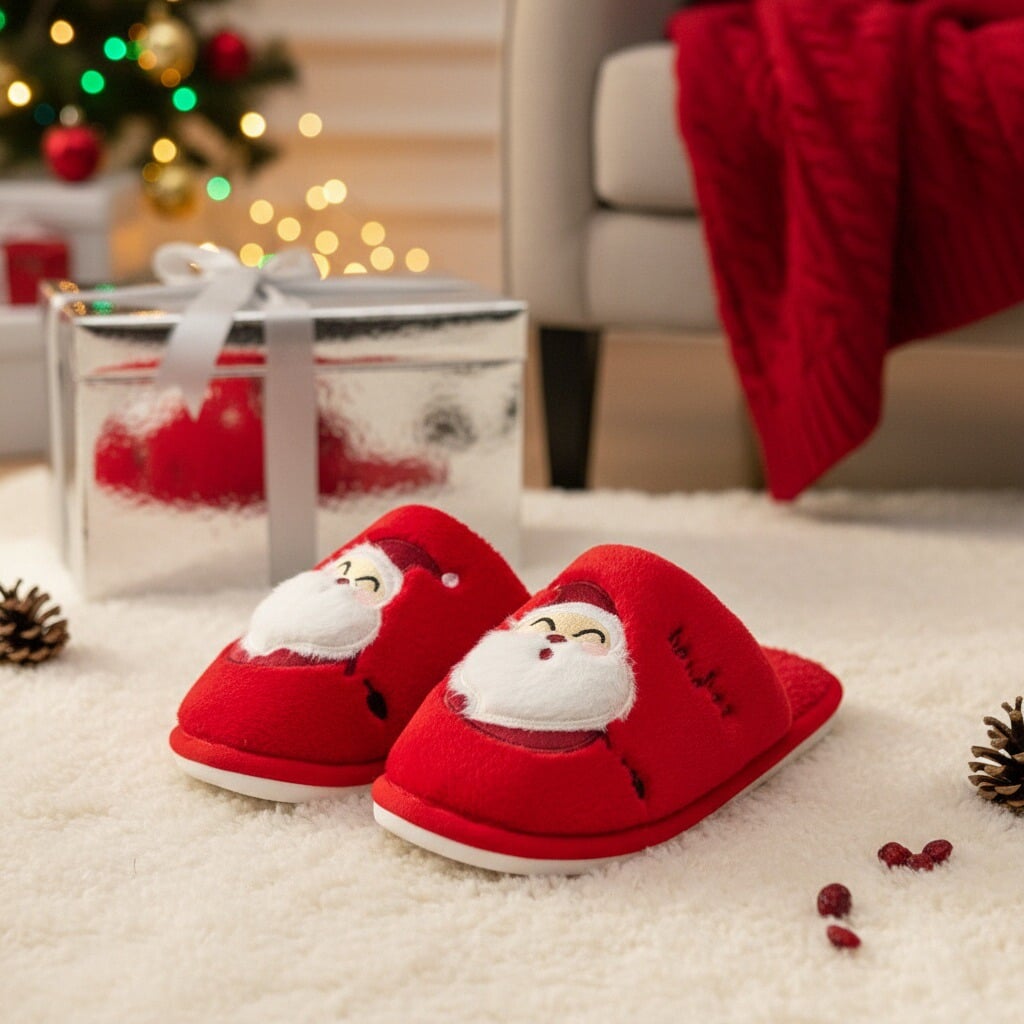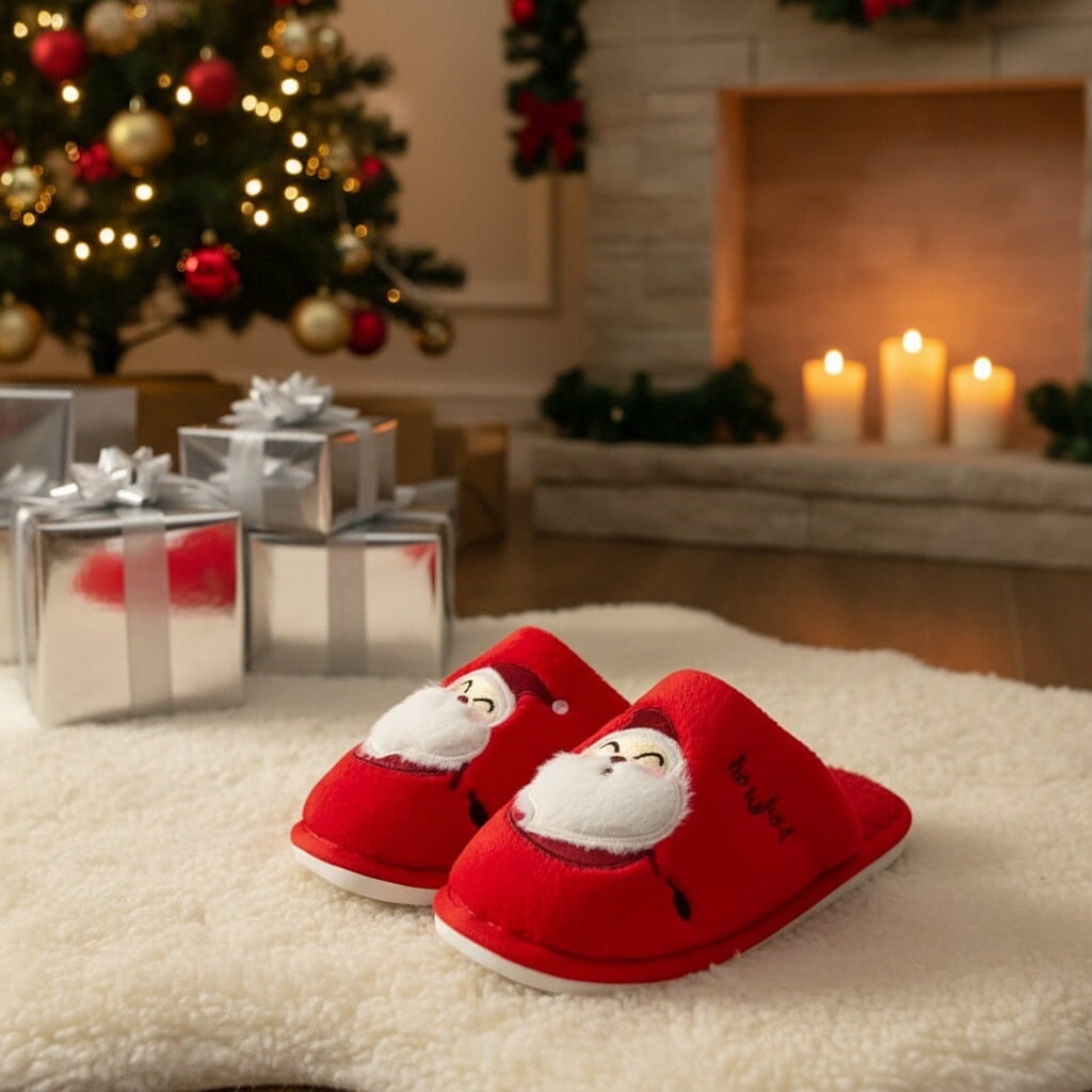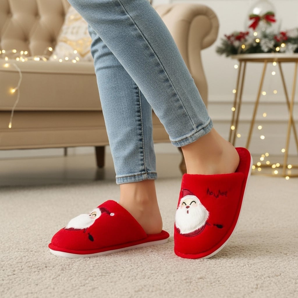 Papuci de casă pufoși și relaxanți cu tematică Crăciun, lucrați din materiale moi și călduroase. Sunt alegerea perfectă pentru confort și încălzire. Detalii: • Compoziție: 90% textil, 10% sintetic; • Talpă anti-alunecare, 100% cauciuc; • Înălțime talpă: 1.5 cm;