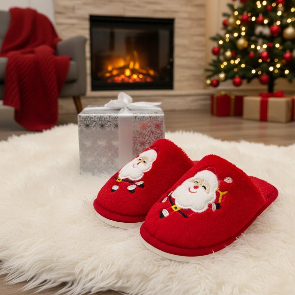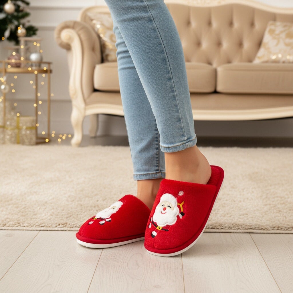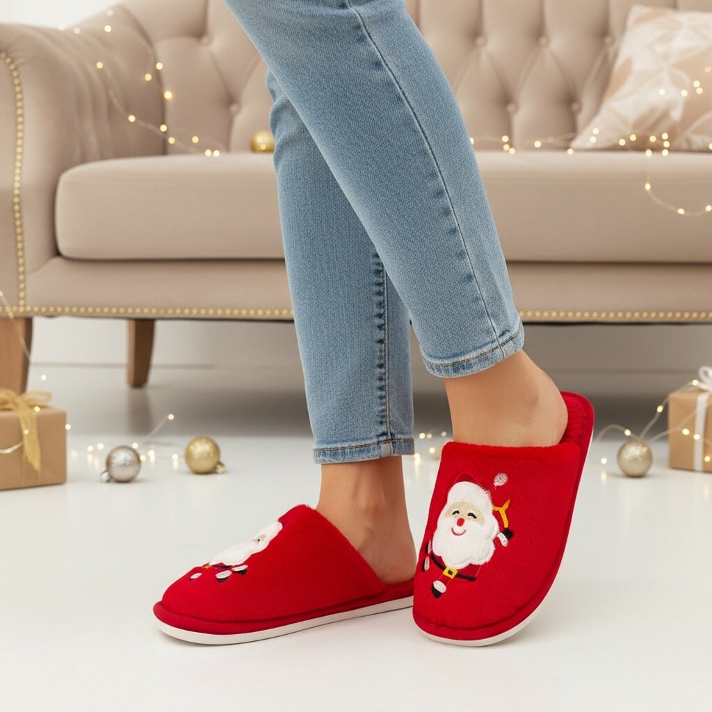 Papuci de casă pufoși și relaxanți cu tematică Crăciun, lucrați din materiale moi și călduroase. Sunt alegerea perfectă pentru confort și încălzire. Detalii: • Compoziție: 70% textil, 30% sintetic; • Talpă anti-alunecare, 100% cauciuc; • Înălțime talpă: 1.5 cm;