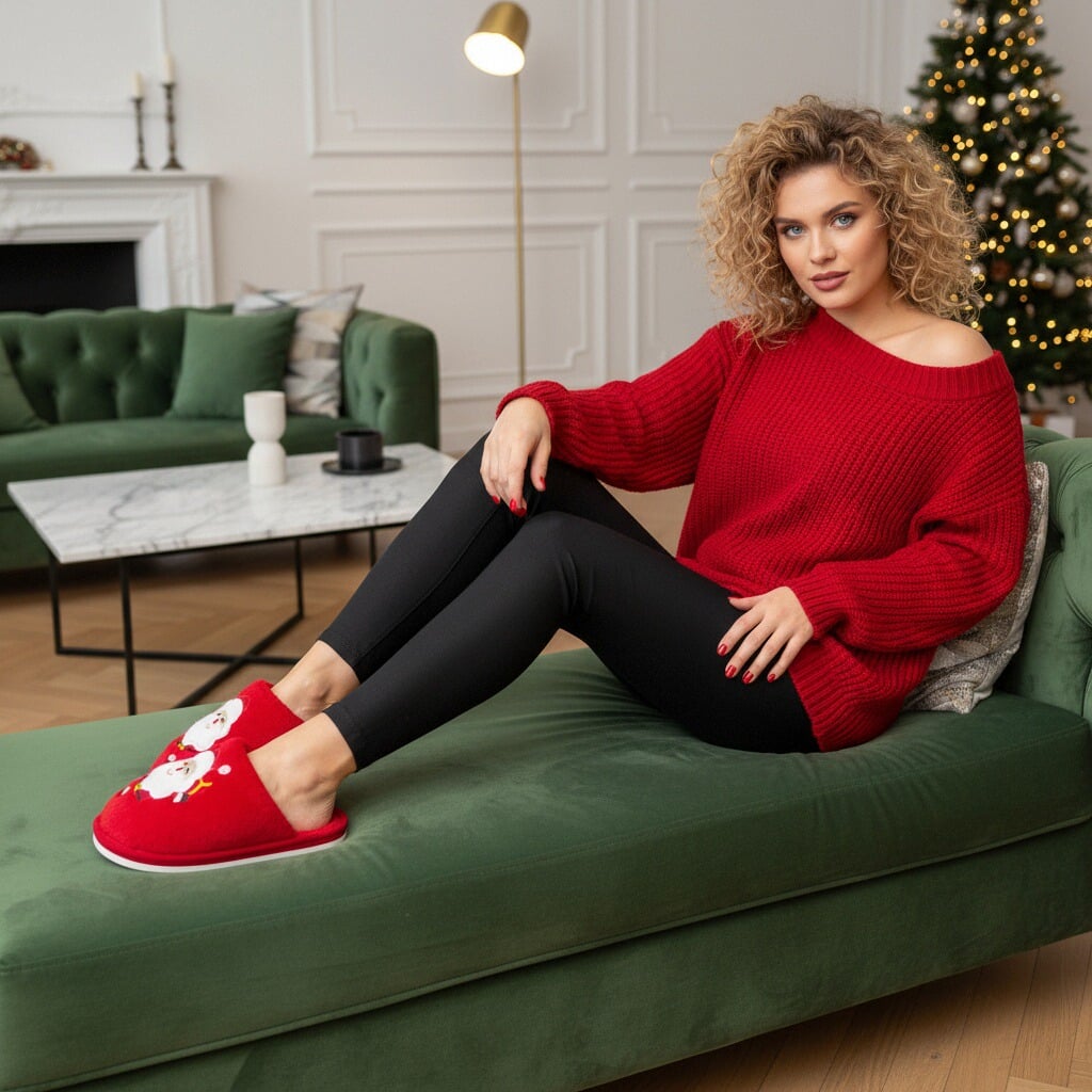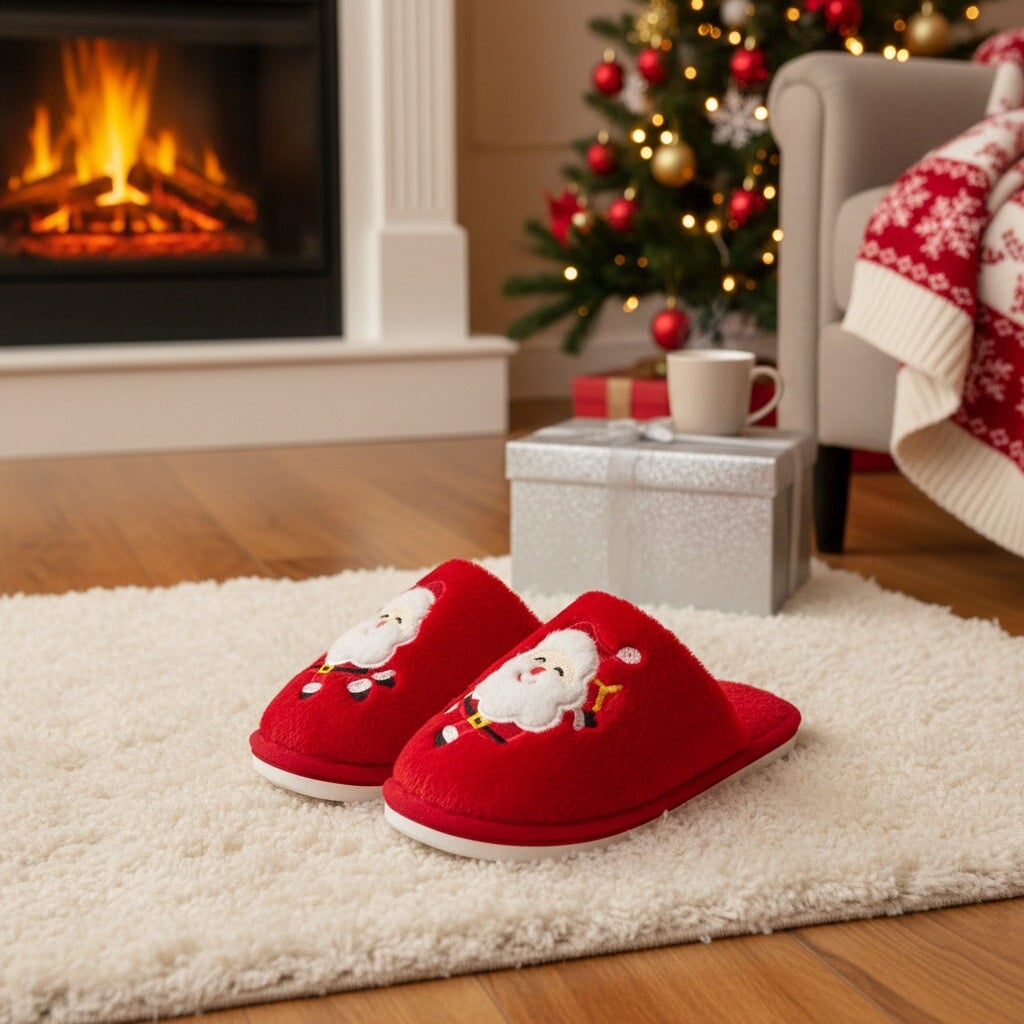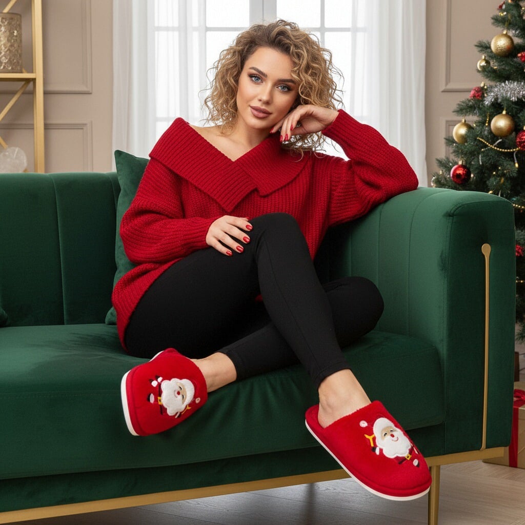 Papuci de casă pufoși și relaxanți cu tematică Crăciun, lucrați din materiale moi și călduroase. Sunt alegerea perfectă pentru confort și încălzire. Detalii: • Compoziție: 70% textil, 30% sintetic; • Talpă anti-alunecare, 100% cauciuc; • Înălțime talpă: 1.5 cm;