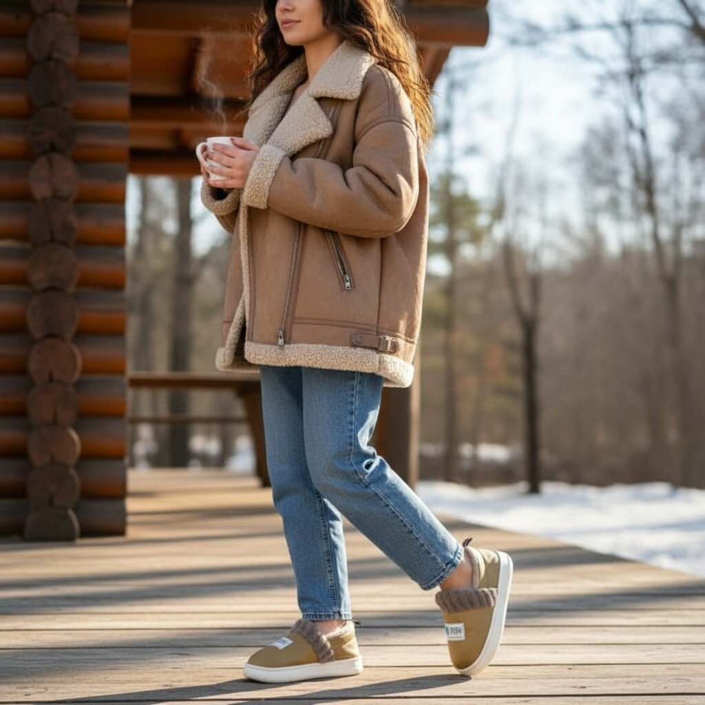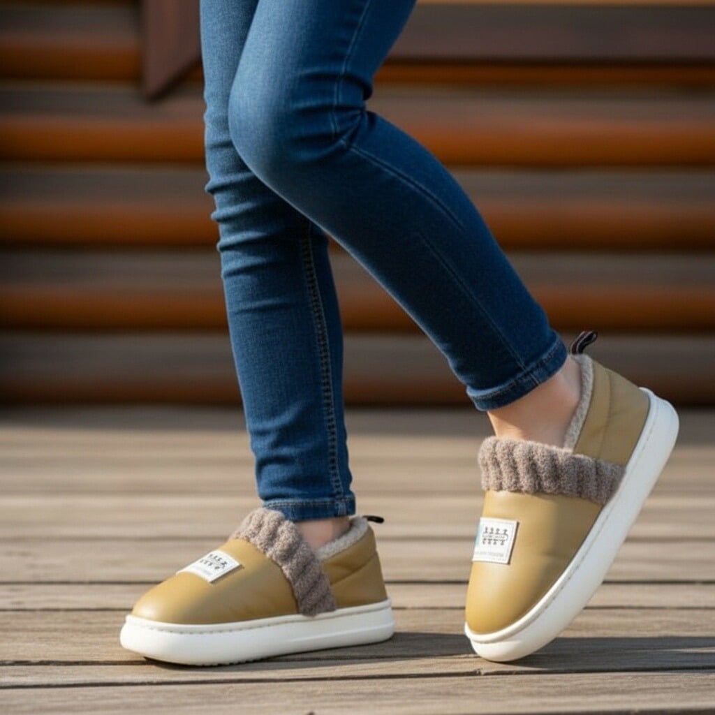 Papuci de casă pufoși și relaxanți, lucrați din materiale moi și călduroase. Sunt alegerea perfectă pentru confort și încălzire. Detalii: • Compoziție: 90% textil, 10% sintetic; • Talpă anti-alunecare, 100% cauciuc; • Înălțime talpă: 2 cm;