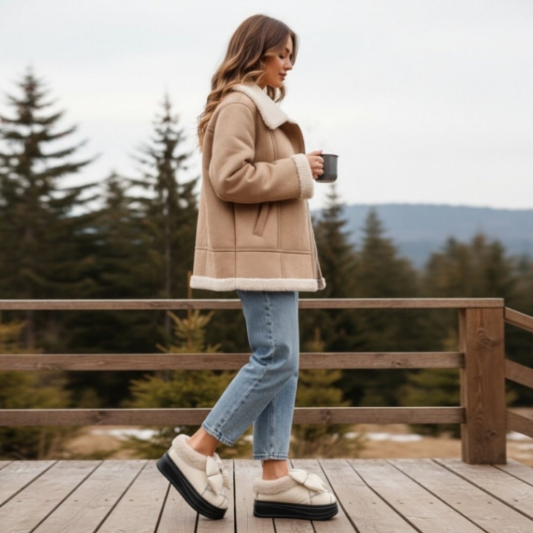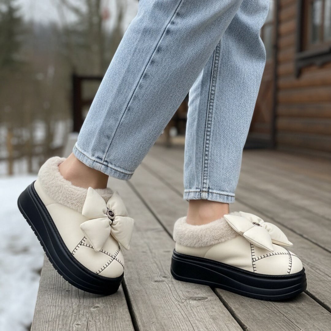 Papuci de casă pufoși și relaxanți, lucrați din materiale moi și călduroase. Sunt alegerea perfectă pentru confort și încălzire.