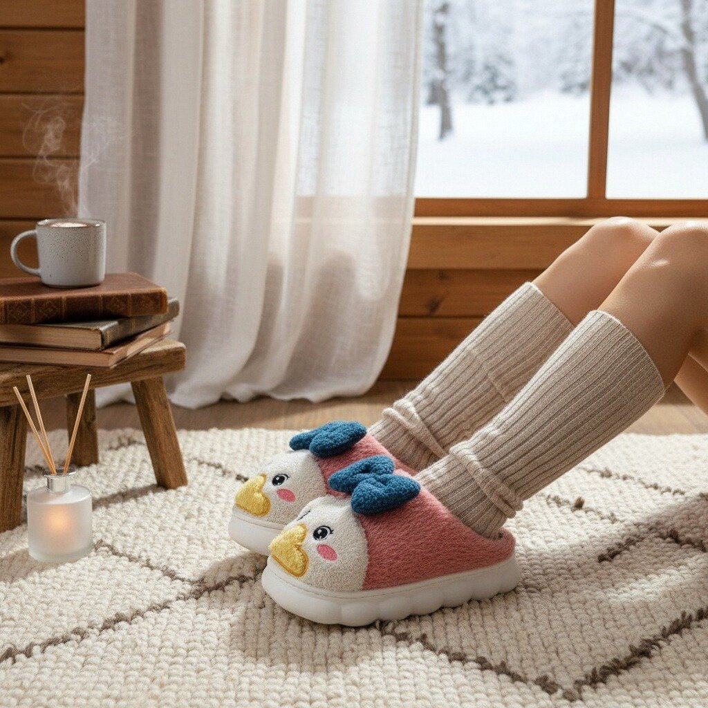 Papuci de casă pufoși și relaxanți, lucrați din materiale moi și călduroase. Sunt alegerea perfectă pentru confort și încălzire.