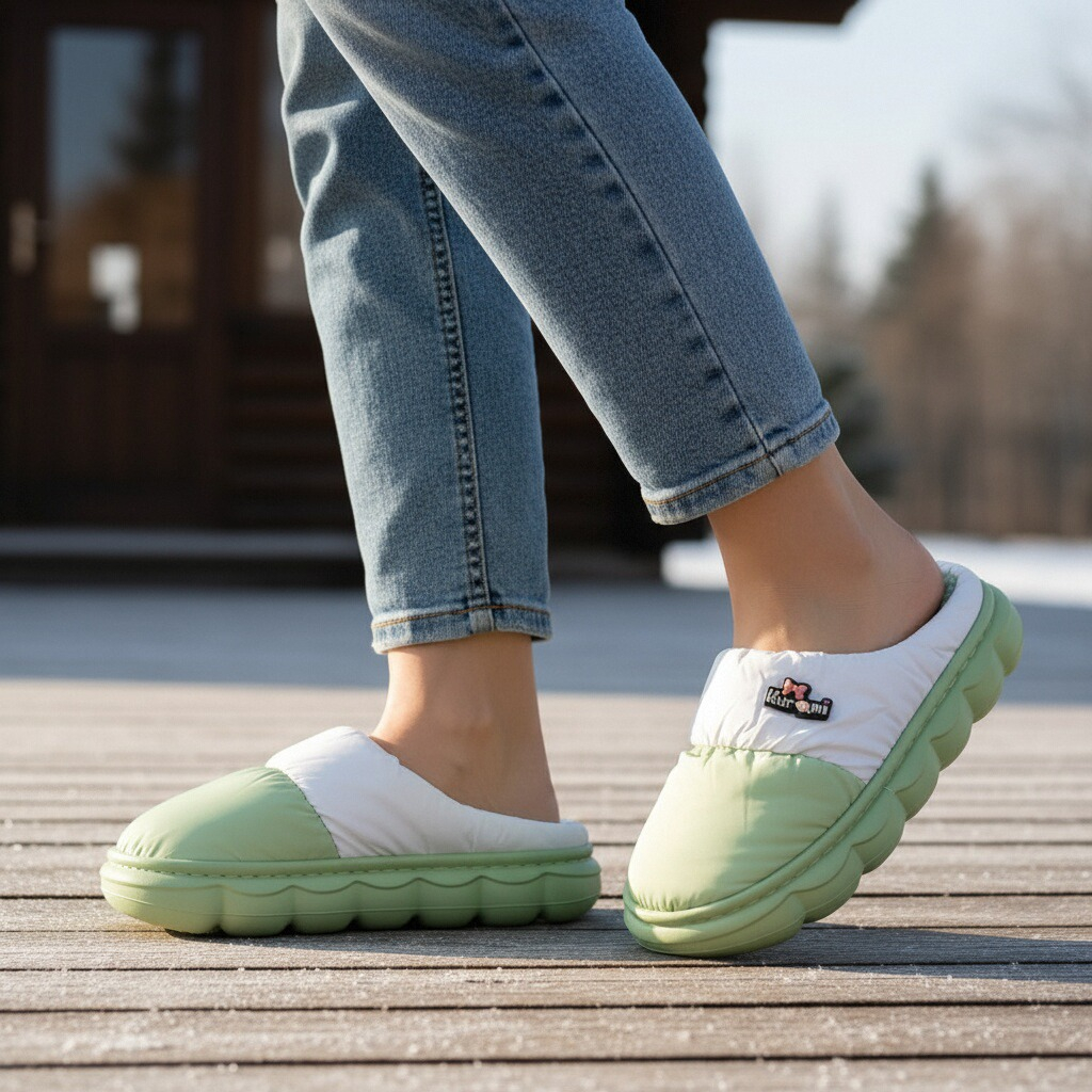 Papuci de casă pufoși și relaxanți, lucrați din materiale moi și călduroase. Sunt alegerea perfectă pentru confort și încălzire.