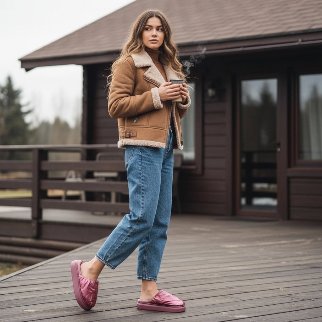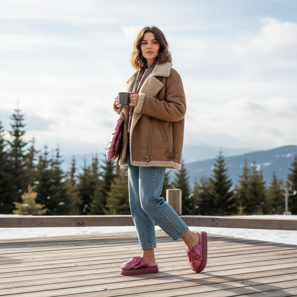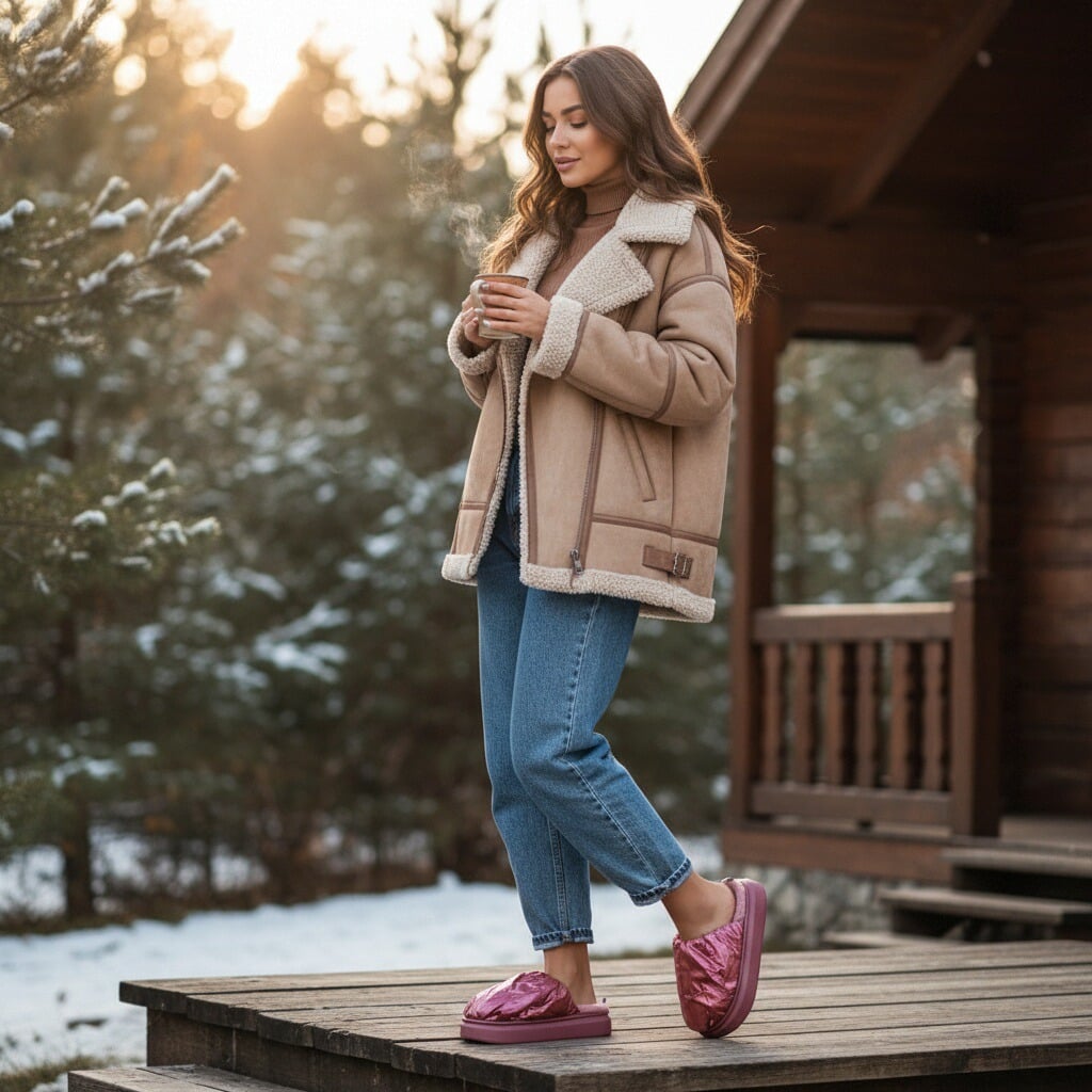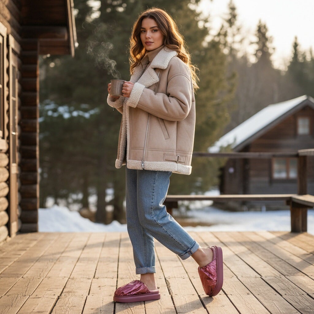 Papuci de casă pufoși și relaxanți, lucrați din materiale moi și călduroase. Sunt alegerea perfectă pentru confort și încălzire.