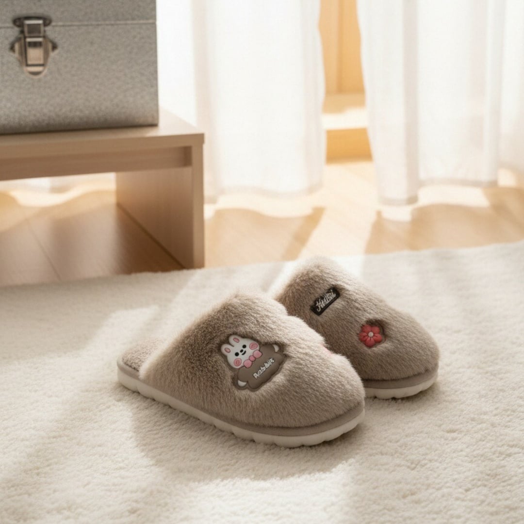 Papuci de casă pufoși și relaxanți, lucrați din materiale moi și călduroase. Sunt alegerea perfectă pentru confort și încălzire.