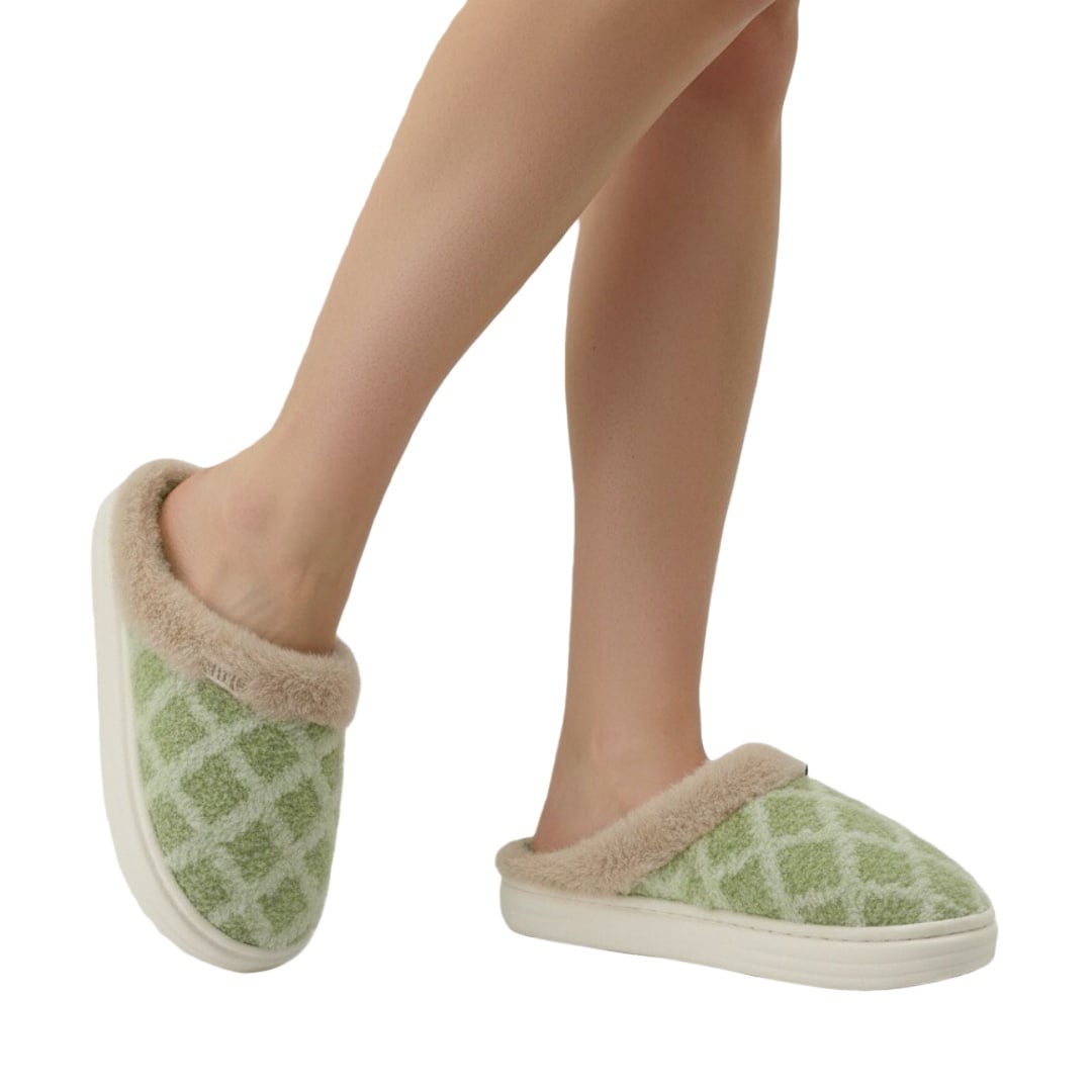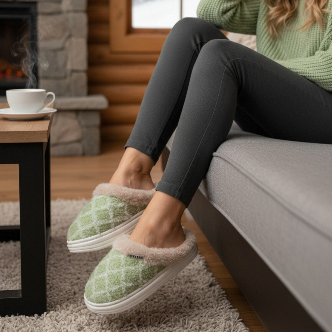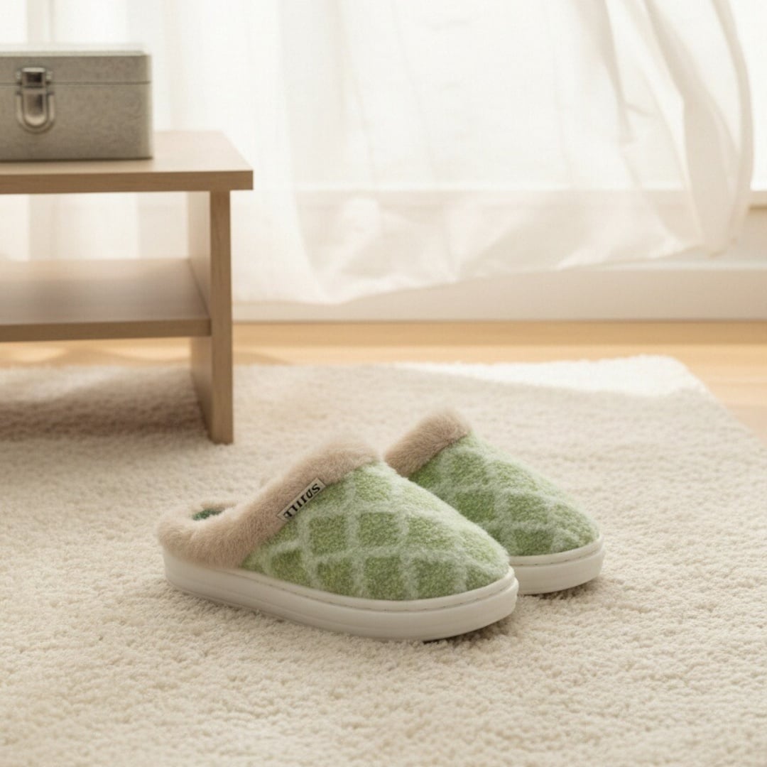 Papuci de casă pufoși și relaxanți, lucrați din materiale moi și călduroase. Sunt alegerea perfectă pentru confort și încălzire.