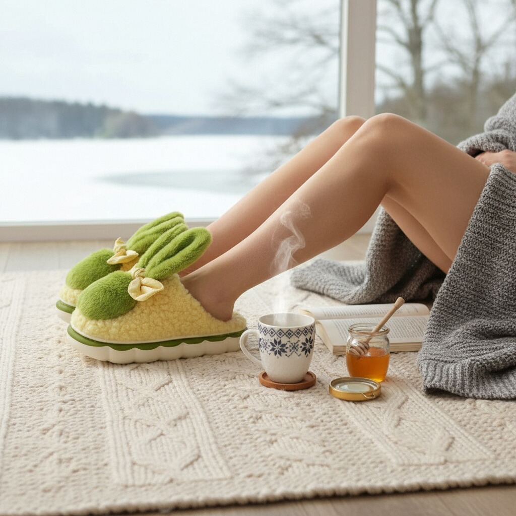Papuci de casa pufosi si relaxanti, lucrati din materiale moi si calduroase. Sunt alegerea perfecta pentru confort si incalzire.