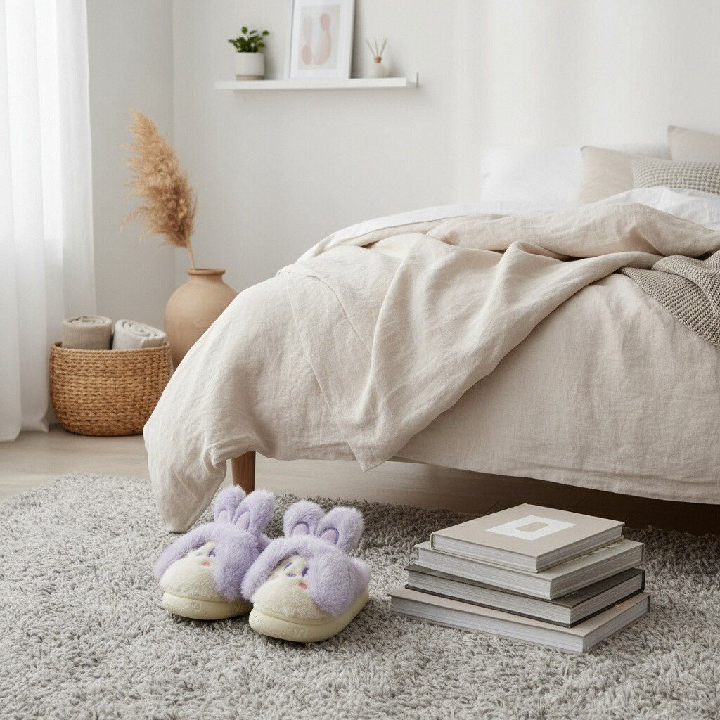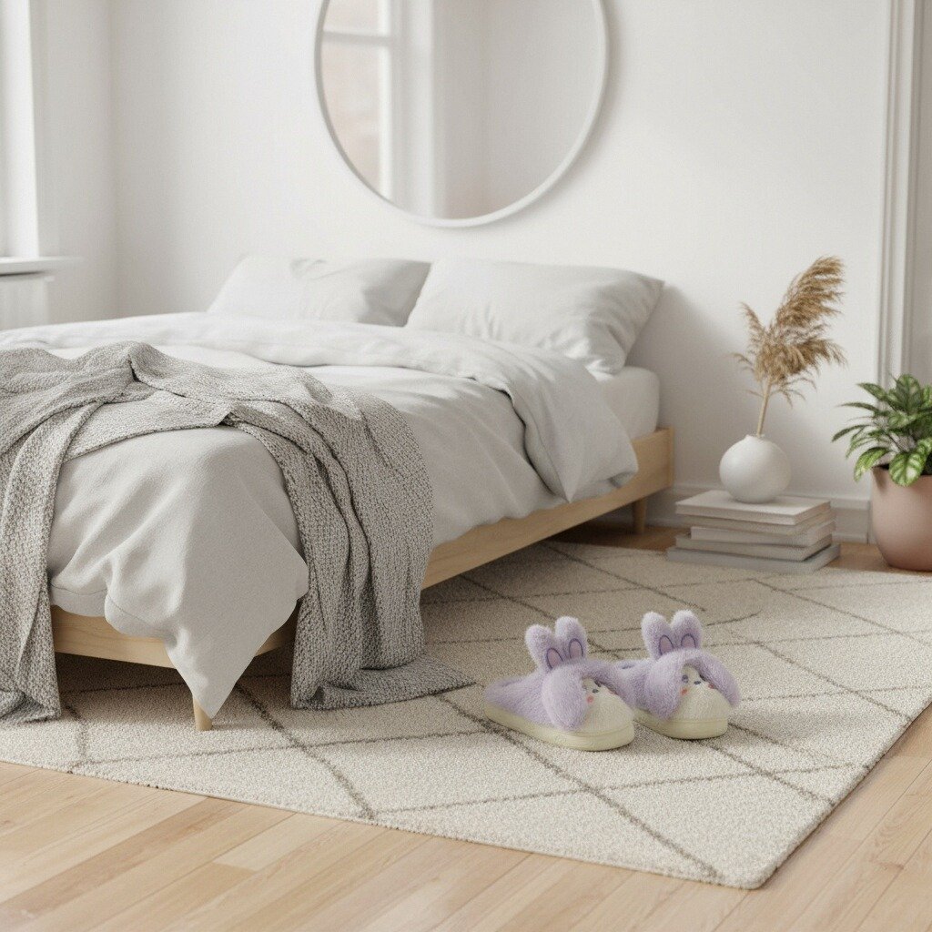 Papuci de casa pufosi si relaxanti, lucrati din materiale moi si calduroase. Sunt alegerea perfecta pentru confort si incalzire. Detalii: • Compozitie: 90% textil, 10% sintetic; • Talpa anti-alunecare, 100% cauciuc; • Inaltime talpa: 3 cm;